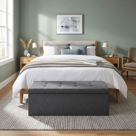Bænken byder på et komfortabelt polstret sæde og samtidig en rummelig indvendig boks, hvor du kan opbevare tekstiler, legetøj og tilbehør. Ideel til entré, soveværelse og stue.