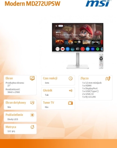 Oplev produktivitet i førsteklasses 4K UHD på et 27" panel, der fremhæver hver detalje i dokumenter, fotos og video. De tynde kanter minimerer forstyrrelser og egner sig perfekt til fler-skærmsopsætninger. Den hvide finish giver din arbejdsplads et moderne og rent look.