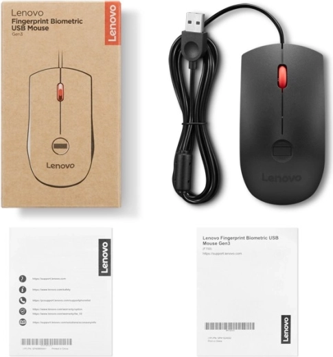 Øg sikkerheden og produktiviteten med Lenovo Gen3-mus, som kombinerer komfort i hverdagen med en integreret fingeraftrykslæser for hurtig og præcis login. Den tilbyder en optisk sensor på 2000 DPI for jævn og præcis sporing, tosidet ergonomi til både højre- og venstrehåndede samt enkel plug-and-play-tilslutning via USB.
