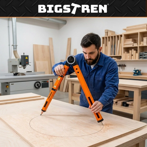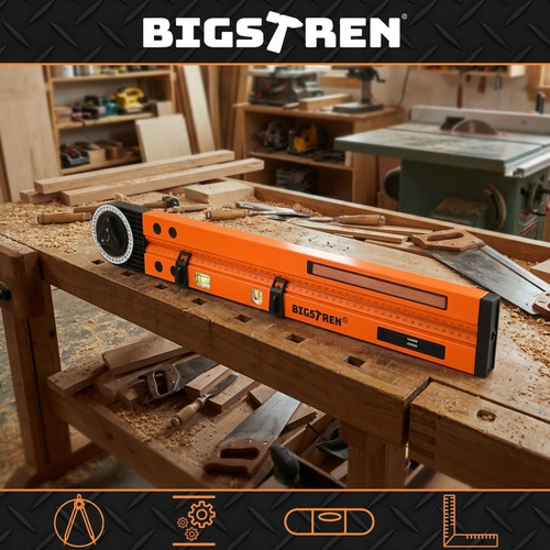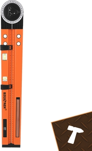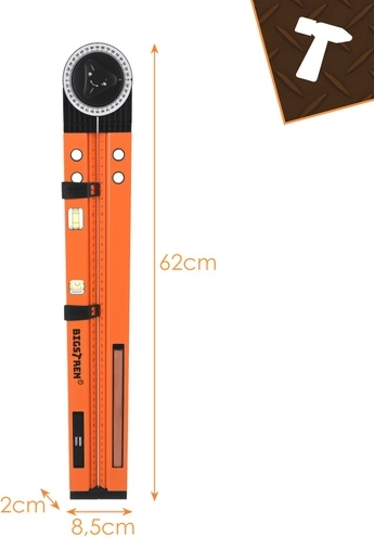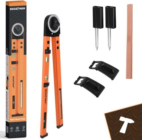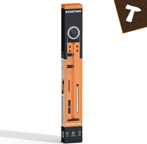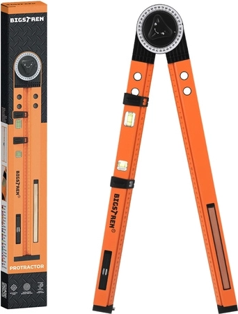 Den justerbare vinkelmåler BIGSTREN 3-i-1 kombinerer tre nøglefunktioner: præcis måling og overførsel af vinkler, nivellering med to libeller og praktisk optegning af cirkler/buer med blyantholder. Med området 0–270° klarer du let geringssnit, montering af lister, flise- og tømrerarbejde samt installationsopgaver på byggepladsen.
