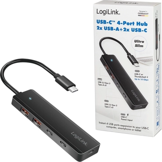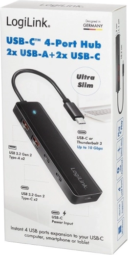Udvid én USB‑C‑port til fire med denne ultratynde hub – 2× USB 3.2 Gen 2 Type‑A og 2× USB 3.2 Gen 2 Type‑C. Den tilbyder hurtig dataoverførsel op til 10 Gb/s, omfattende beskyttelse mod overbelastning, overspænding og kortslutning samt bred kompatibilitet med Windows, macOS, iOS, ChromeOS, Android og Linux. Ideel til bærbare og tablets takket være det kompakte og lette design.