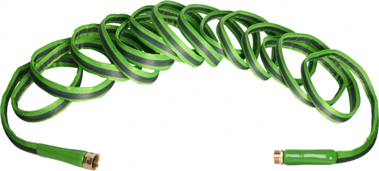 Den forstærkede kappe med tekstilarmering begrænser vridning og sammenfiltring, så slangen forbliver gennemstrømningsdygtig og er let at rulle op og opbevare.