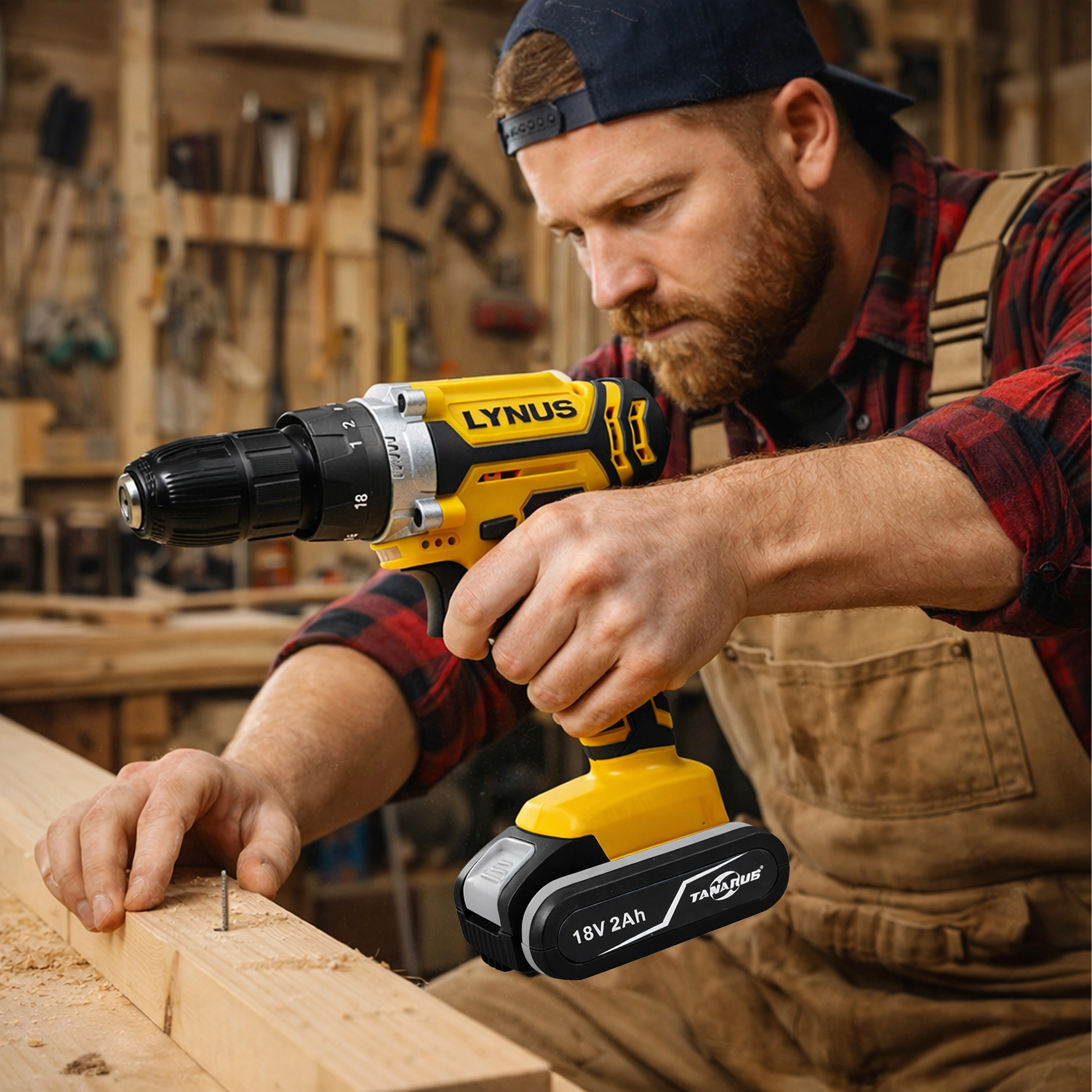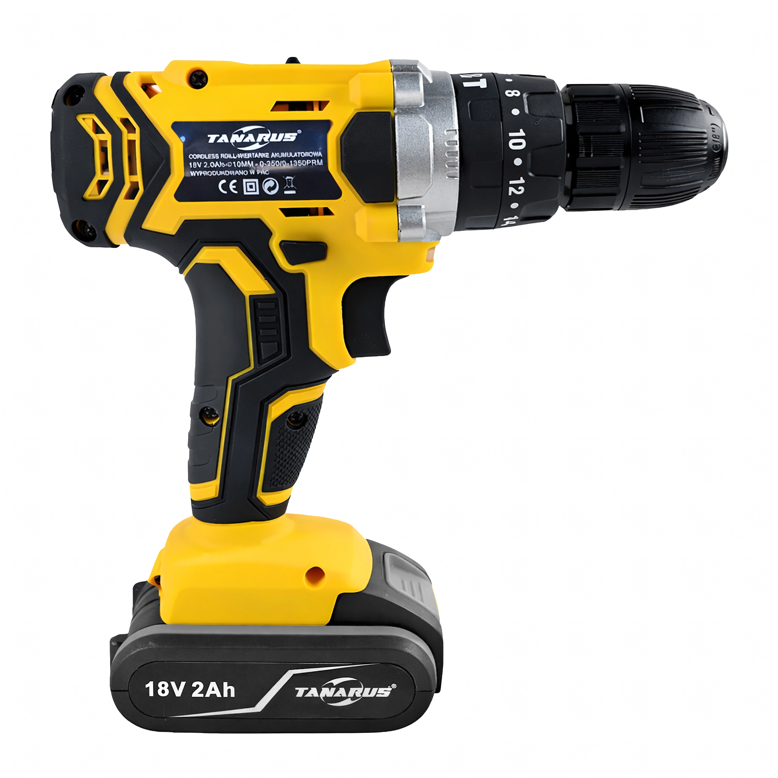 Denne kraftige akku-boremaskine og skruetrækker 18 V er designet til hurtig boring og præcis skruning i træ, plast og metal. To 2 Ah-batterier i pakken forlænger arbejdstiden – mens du arbejder med det ene, kan det andet oplades. Ergonomisk greb med gummibelægning sikrer sikkert hold og komfort selv ved længere tids brug.