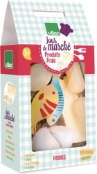 Glæd dine børn med et sæt kvalitetsfødevarer i træ, som bringer et strejf af virkelighed ind i deres legekøkken. Sættet indeholder: