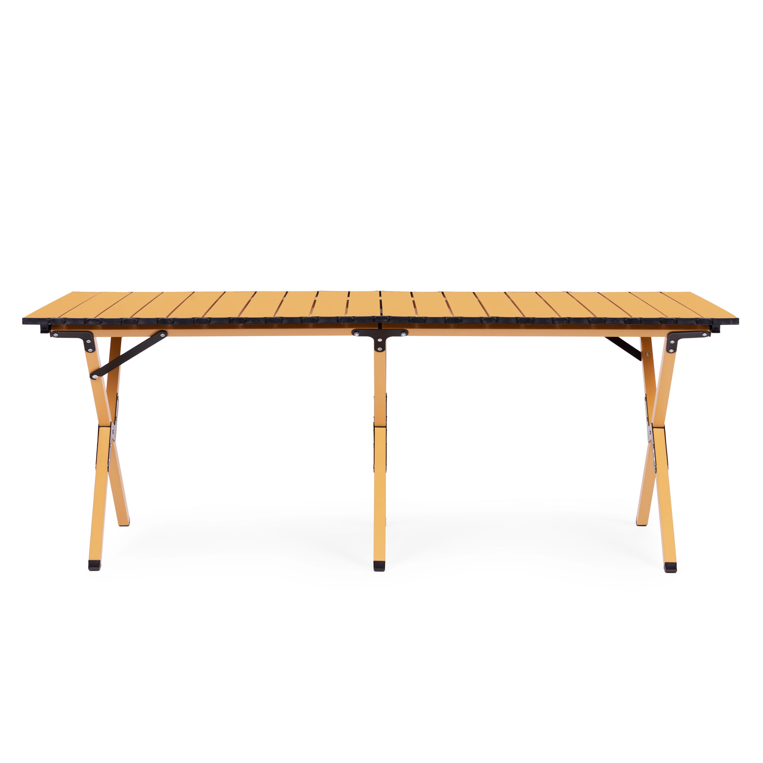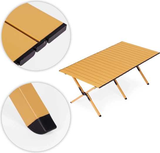 Nyd komforten overalt udendørs – dette sammenklappelige bord giver en stabil flade til mad, drikke og campingtilbehør. Takket være den robuste ramme i kulstofstål og den rullebare lamelbordplade får du fremragende stabilitet, nem vedligeholdelse og hurtig montering.