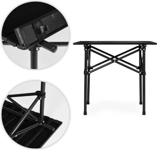 Nyd komforten udendørs med et kompakt og pålideligt bord, der er let at folde og bære. Den rullelige lamelplade skaber en stabil overflade til mad, drikke og tilbehør, mens krydsafstivningen i kulstofstålrammen giver styrke og stabilitet på græs, terrasse og skovbund.