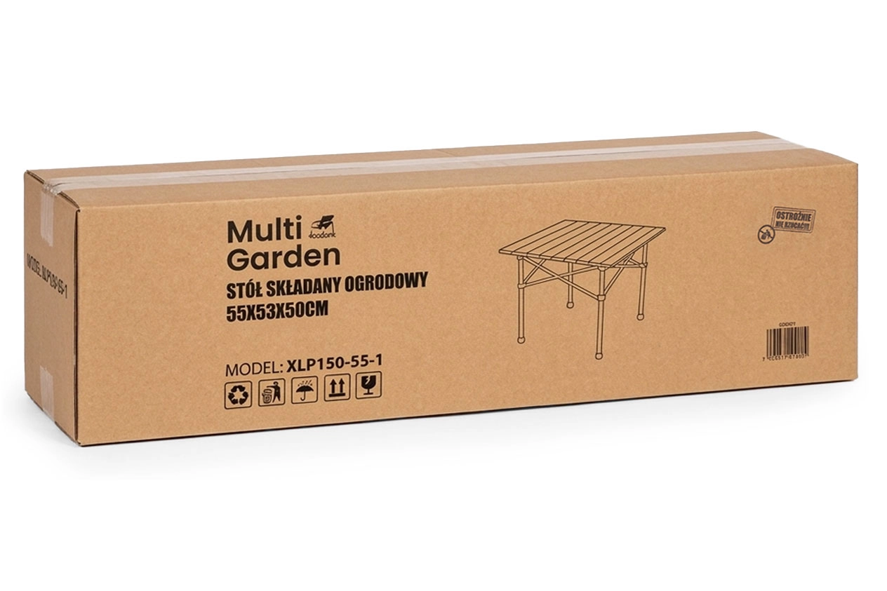 Det praktiske campingbord MULTIGARDEN med målene 53 × 55,5 × 49,5 cm har en let, sammenklappelig konstruktion, en holdbar stålramme og en rullelig lamelbordplade. Takket være skridfaste fødder, hurtig samling uden værktøj og en transporttaske i pakken er det ideelt til camping, picnic og grill. Bæreevne op til 20 kg.