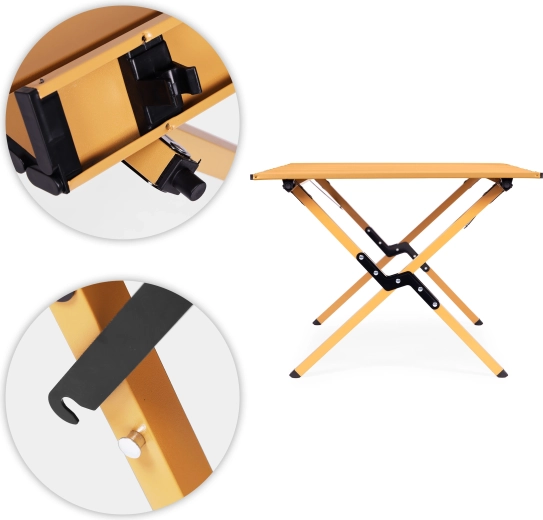 Den smarte, sammenklappelige konstruktion med rullelig bordplade gør det muligt at slå op og pakke ned på ingen tid. Ideelt når du behøver en stabil overflade på få sekunder.