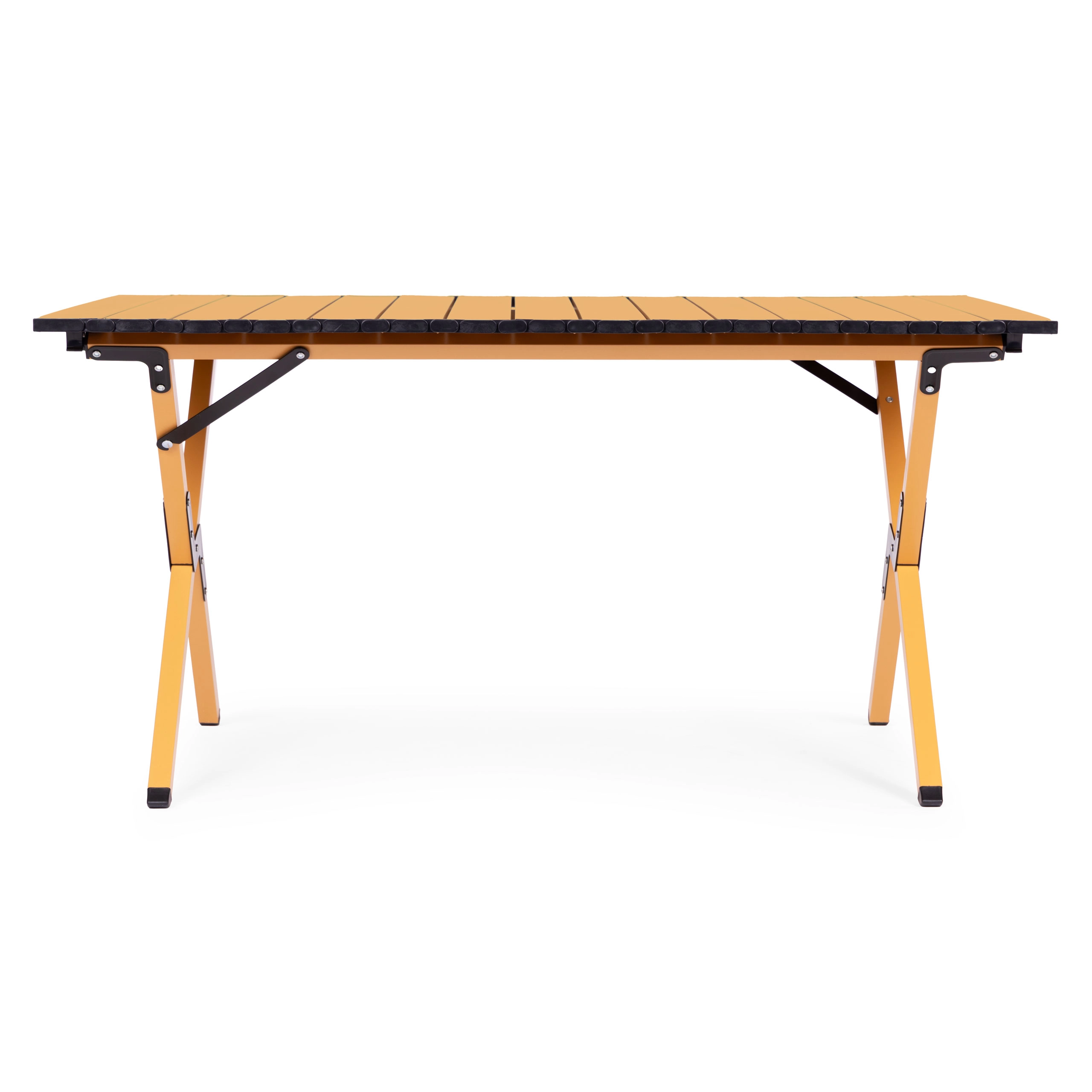 Nyd komforten overalt udendørs – dette let transportable, sammenklappelige bord giver en stabil overflade til servering af mad, forberedelse af snacks samt afsætning af drikkevarer og udstyr. Kulstofstål sikrer holdbarhed, mens den rullelige lamelplade nemt monteres med sikre klips. Skridsikre fødder står fast på græs, jord og terrasse.
