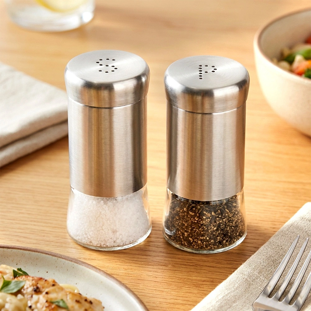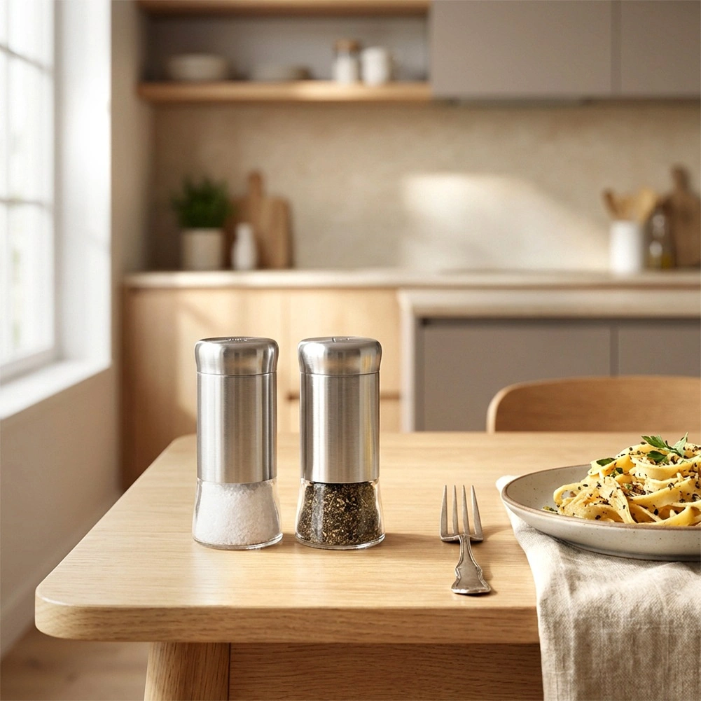 Klart glas viser det resterende indhold, så du i tide kan fylde salt eller peber op og altid have krydderierne ved hånden.