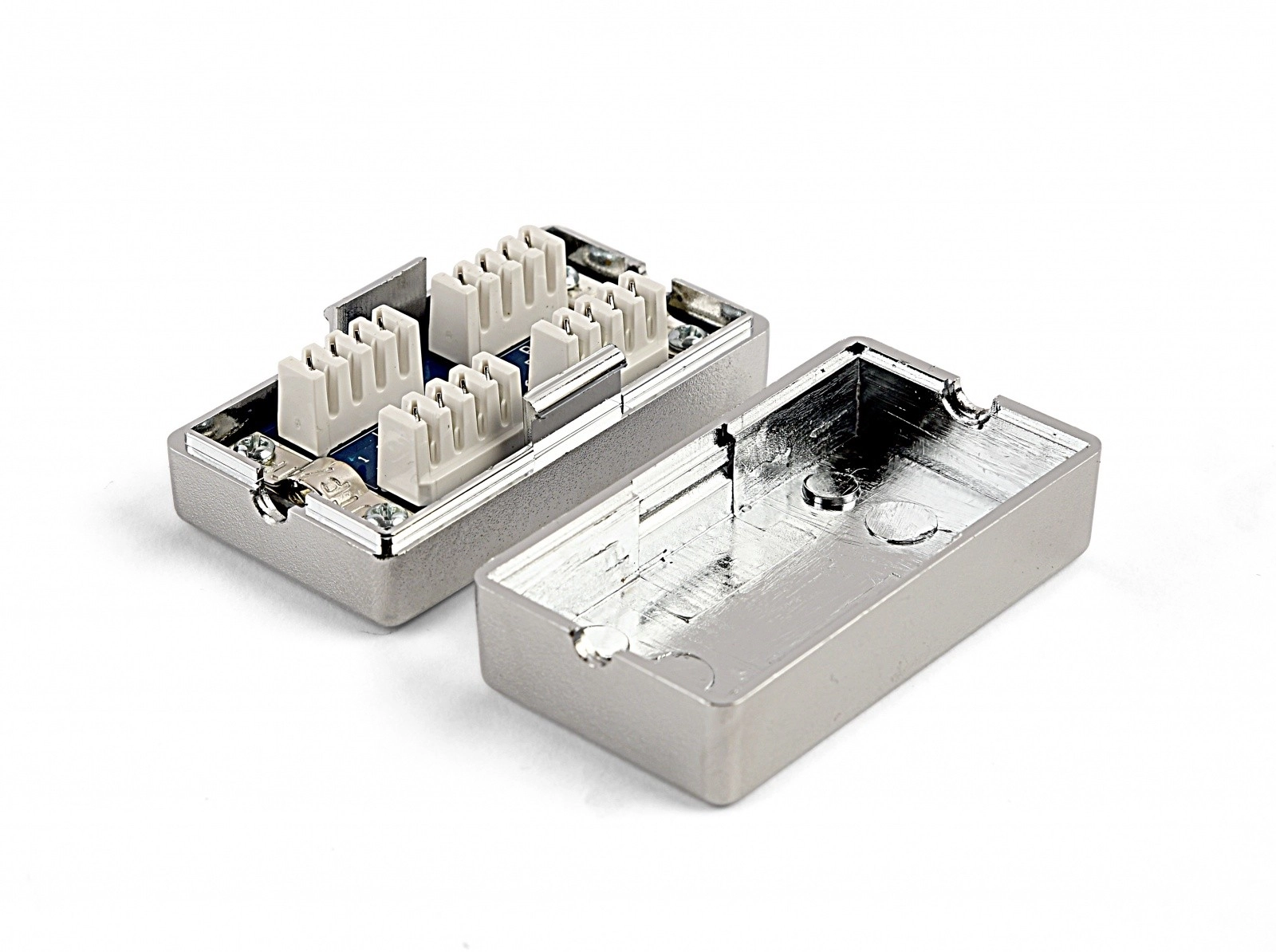 Den praktiske boks med aftageligt låg gør installation og service lettere. Den robuste udførelse er egnet til in-line montering i fordelerskabe samt i kontor- og hjemmenetværk.