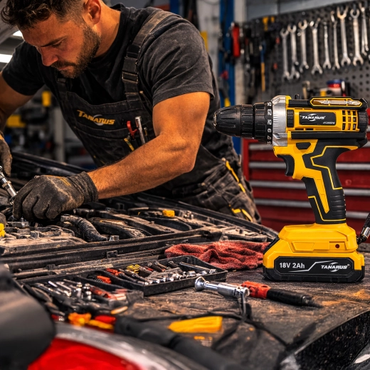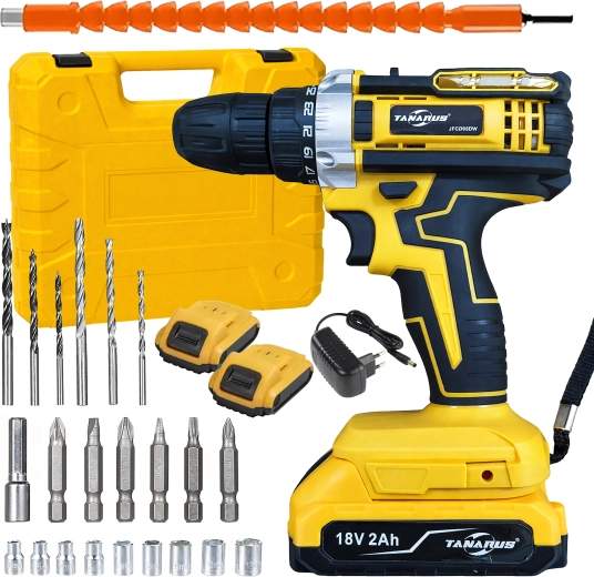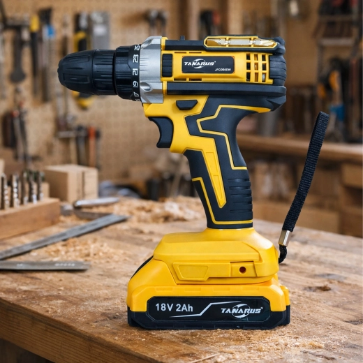 Pålidelig hjælper til værksted, hjem og autoservice. Akku boremaskine/skruetrækker med 18 V og batterikapacitet 2× 2 Ah giver rigelig kraft til almindelig boring i træ, plast og metal samt præcis skruning med mulighed for momentindstilling. Den nøgleløse borepatron fremskynder skift af bits og bor, mens LED-lys forbedrer synligheden i mørke hjørner.