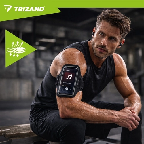 Træn frit og med din yndlingsmusik. TRIZAND løbearmbåndet bærer din smartphone behageligt på armen, så du altid har navigation, musik og træningsapps lige ved hånden. Det transparente PVC-vindue er touch-kompatibelt, så du kan betjene skærmen selv under løb.