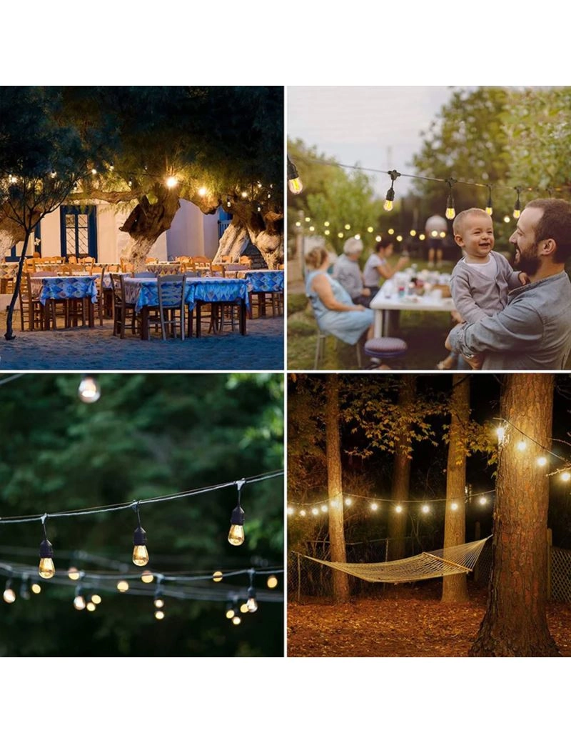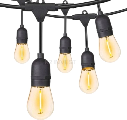 Den praktiske konstruktion med udskiftelige LED-pærer E27 og holdbare, splintsikre skærme sikrer tryg og ubesværet brug ude og inde. Den robuste kabel gør det nemt at montere langs hegn, over pergolaer eller mellem træer, og takket være IP44 modstår den pålideligt regn og fugt.