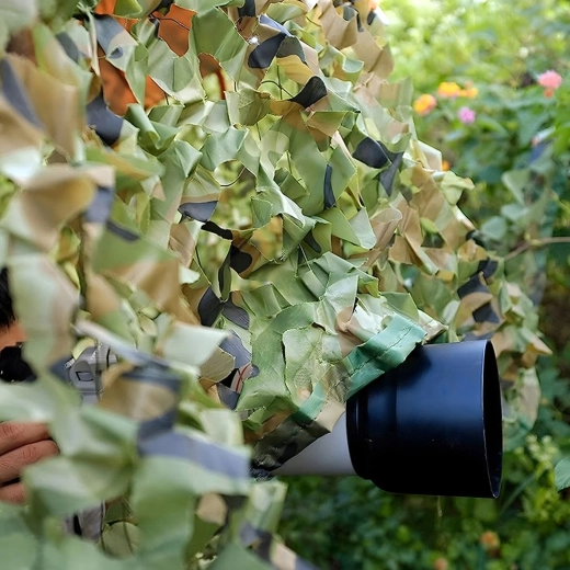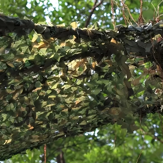 Bladudskæringer og woodland-moro mønster bryder pålideligt konturerne og hjælper nettet med at smelte sammen med den omgivende vegetation. Ideelt til at dække udstyr, hegn eller overdækninger.