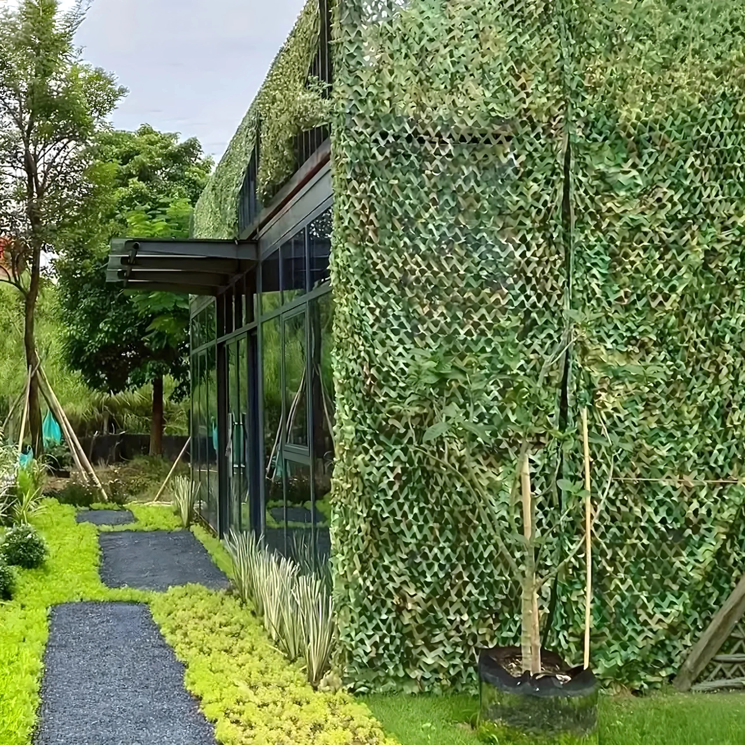 Takket være målet 3 × 6 m dækker du nemt en pergola, et lysthus, et telt eller et arbejdsområde. Nettet fastgøres med snore, liner eller kroge – monteringen er hurtig og fleksibel. Velegnet til haven, sommerhuset, naturobservation, camping og som dekoration i outdoor/military-stil.