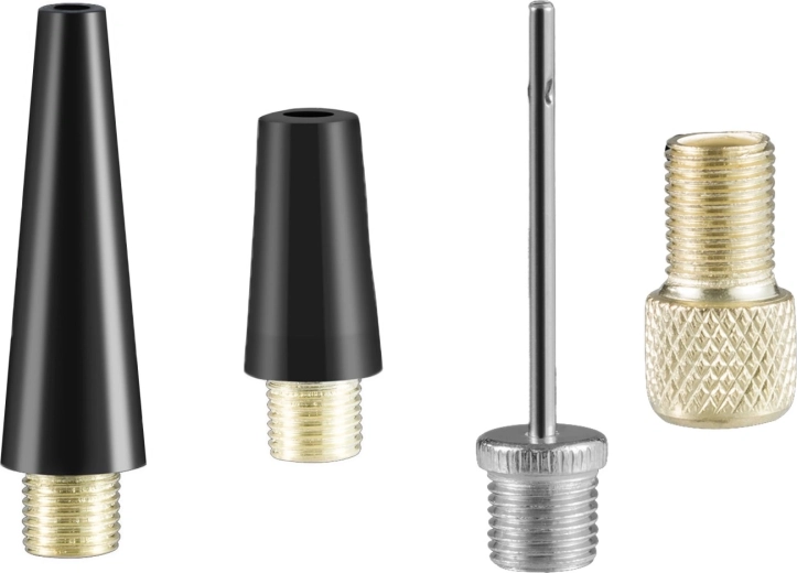 - Slange, ventiladaptere (boldnål, koniske dyser, adapter), USB-A – USB-C opladekabel