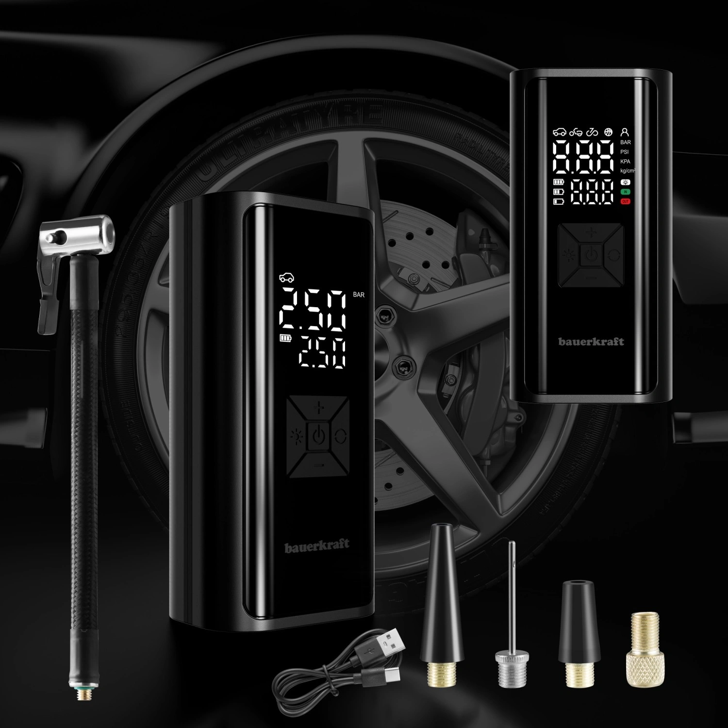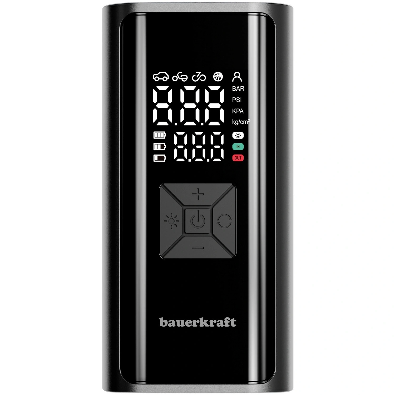 Denne smarte trådløse kompressor er den ideelle ledsager på farten og i garagen. Takket være de kompakte mål lægger du den nemt i rygsækken, cykeltasken eller handskerummet i bilen. Det digitale display muliggør præcis indstilling og kontrol af trykket i realtid, og automatisk slukning ved det ønskede niveau beskytter mod overpumpning.