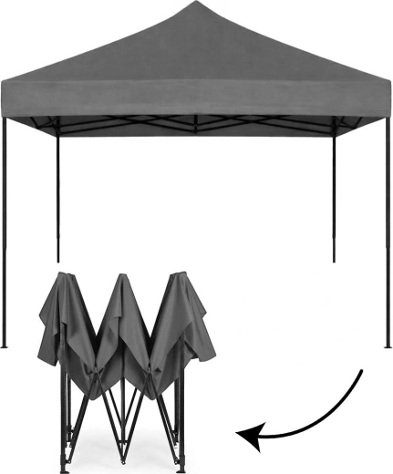 Den selvudfoldende stålramme slås ud på få minutter uden kompliceret montering. Ideel til havefester, markeder og festivaler.
