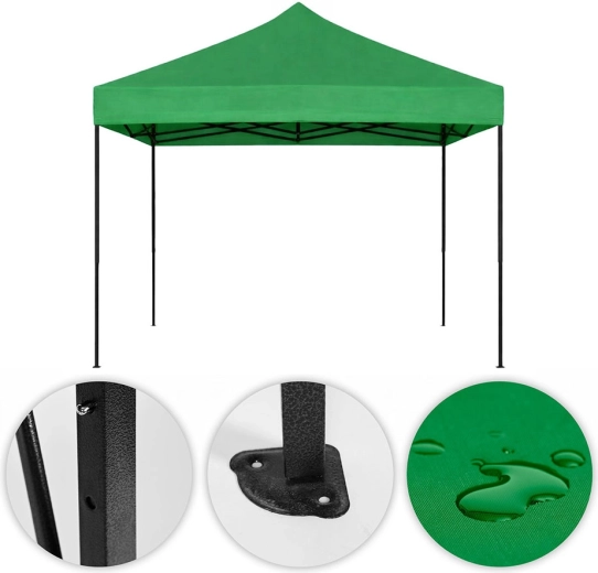 Det stærke 420D-tekstil med PVC-overflade beskytter mod både regn og UV-stråling. Et fremragende valg til brug i haven, på markeder og til sæsonbrug.