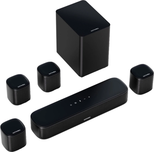 Fire små, præcist tunede ULTIMEA-satellithøjttalere udvider lydbilledet og forbedrer tydeligheden af rumlige effekter.