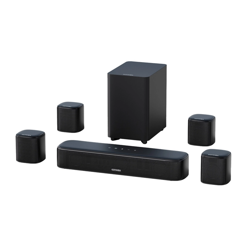 ULTIMEA Aura A40 løfter hjemmeunderholdningen med 7.1 Channel Virtual Surround, som skaber en bred og indlevende lydscene. Spidsydelse op til 330 W, otte drivere og tuning med BassMX og SurroundX sikrer klare dialoger, detaljerede effekter og dyb bas fra den kablede 4" subwoofer.