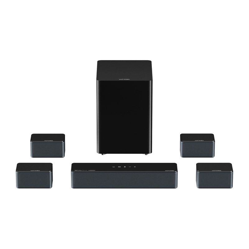 Systemet understøtter 4K HDR Passthrough, og med X‑Upmix forvandles selv ikke-native kilder til en flerspors, opslukende oplevelse. Med ULTIMEA-appen kan du justere equalizer, lytteprofiler og fine lydindstillinger. Tilslutning omfatter HDMI eARC, HDMI IN, optisk, AUX, USB og Bluetooth 5.3 – nem integration i enhver stue.