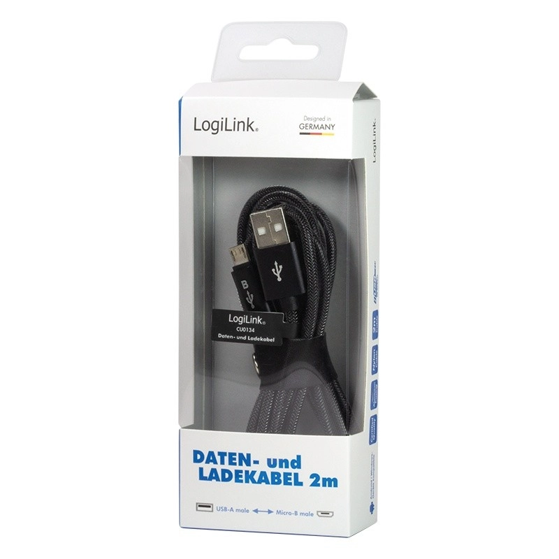Pålidelig data- og opladningskabel med USB‑A- og Micro‑B-stik i en længde på 2 m for nem tilslutning og opladning. Ideel til dataoverførsel, synkronisering og strømforsyning af kompatible enheder. Den længere længde giver større rækkevidde og fleksibilitet, mens den gode kvalitet sikrer stabil overførsel og sikker opladning.