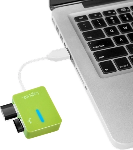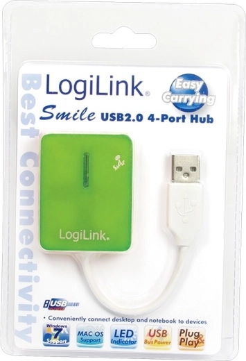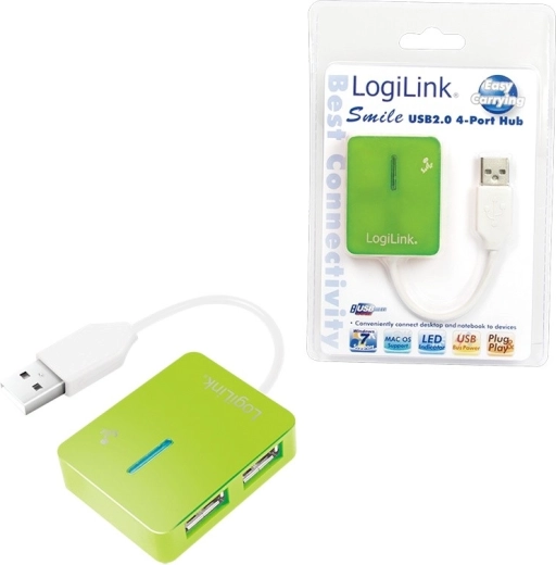 Kompakt USB-hub 2.0 med 4 porte i et stilfuldt grønt design udvider tilslutningen på din bærbare eller PC. Understøtter hastigheder op til 480 Mb/s og er bagudkompatibel med ældre USB-enheder. En praktisk, elegant og pålidelig løsning til hverdagens arbejde og underholdning.