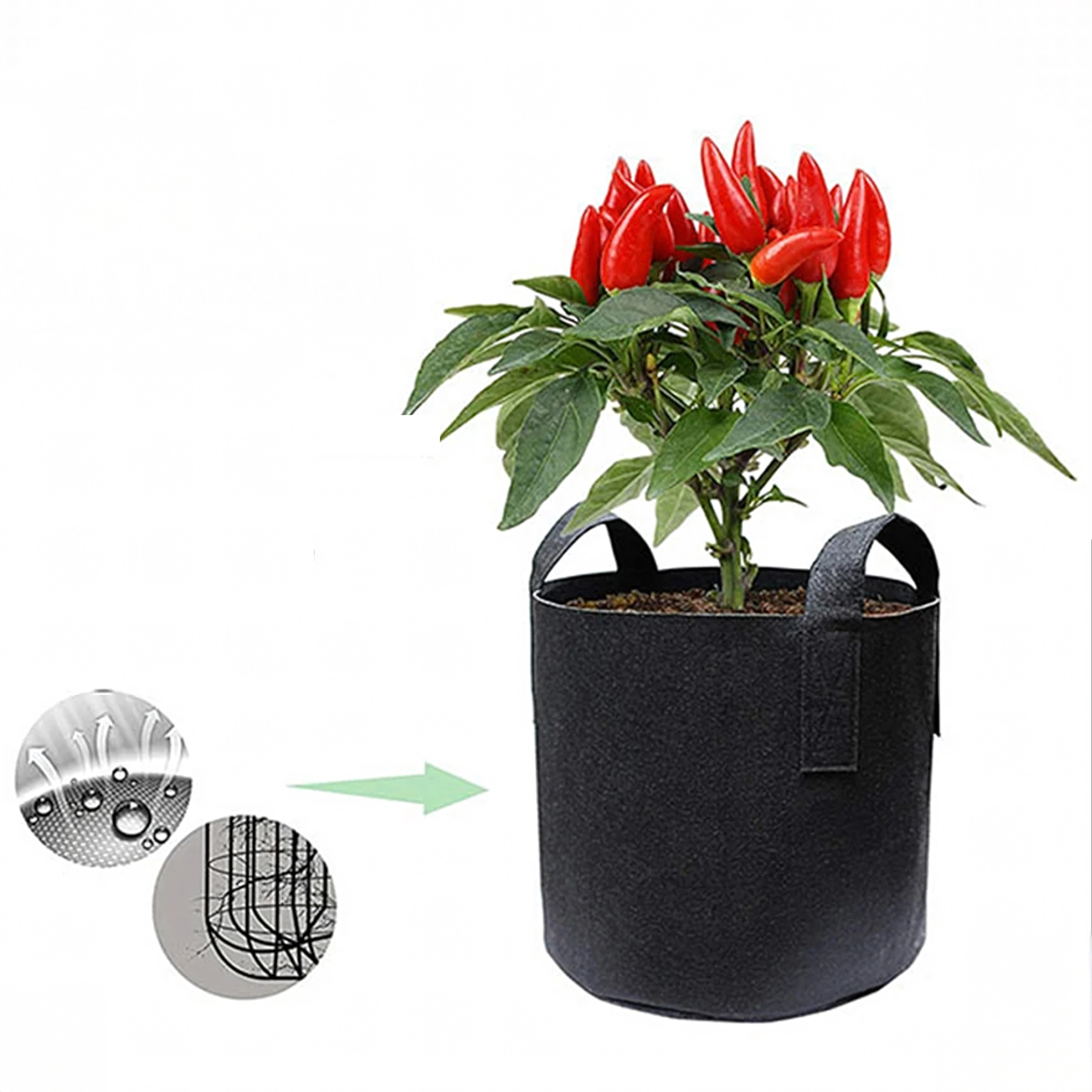 Tekstil-dyrkningsposen er et fremragende valg for alle, der vil udnytte pladsen effektivt og dyrke sunde planter uden traditionelle bede. Det åndbare materiale giver rødderne rigeligt med ilt, hvilket understøtter hurtigere vækst og et stærkere rodsystem. Posen kan let flyttes takket være de solide hanke og kan bruges igen gennem hele sæsonen.