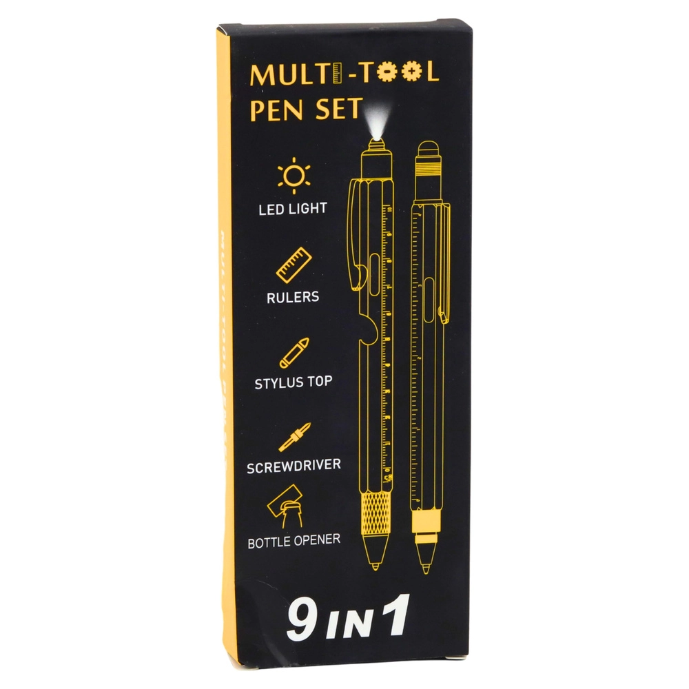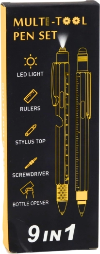 - 9-i-1 værktøj (sort pen) + multifunktionspen (gul)