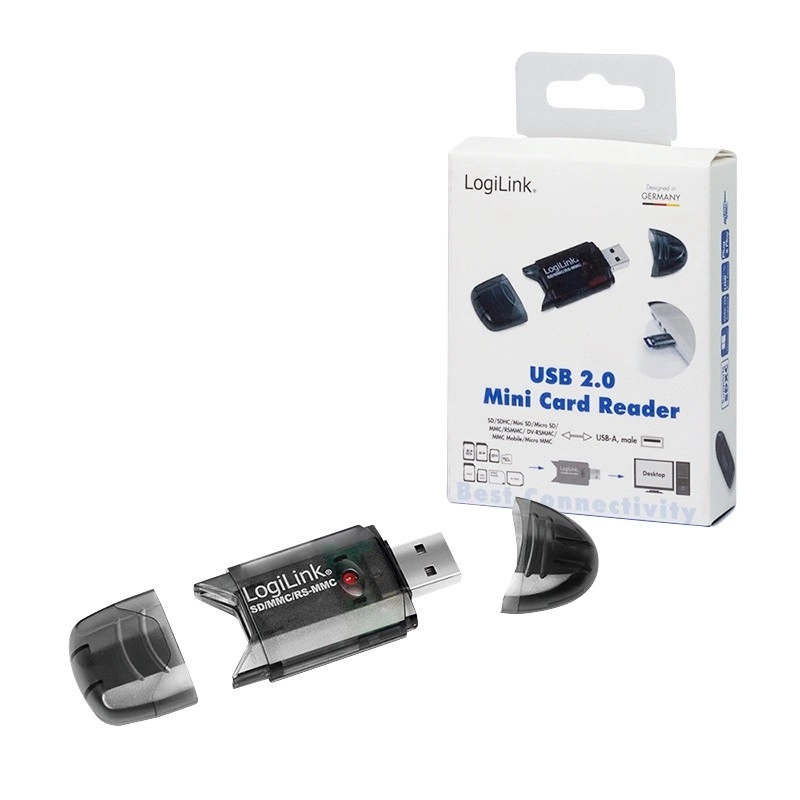 Den stilfulde og bærbare LogiLink‑kortlæser med USB 2.0‑interface giver en enkel måde at overføre data fra enheder til computer. Den understøtter de gængse kortformater SD/MMC/RS‑MMC, og takket være det kompakte kabinet med beskyttelseshætter er den klar til daglig brug hjemme og på farten.
