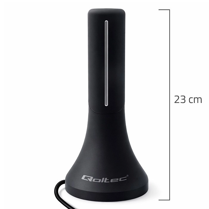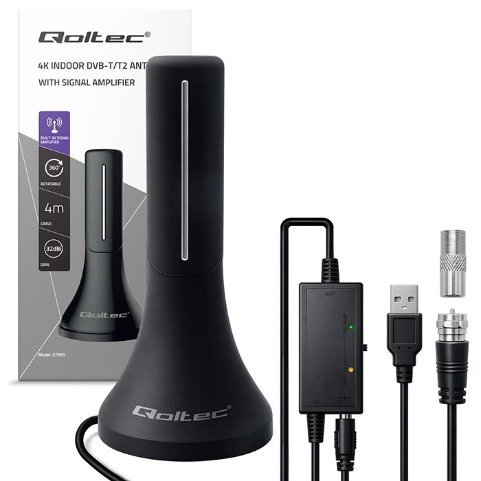 Den moderne indendørs DVB-T/T2-antenne sikrer stabil modtagelse af terrestrisk digitalt tv inklusive MUX-1, MUX-2, MUX-3, MUX-6 og MUX-8. Takket være den kraftige forstærker og høje forstærkning på 32 dBi leverer den et rent billede i op til 4K-kvalitet selv under mere krævende forhold. Strømforsyningen er enkel via USB, og med den standardiserede F-Male-stiktype er antennen kompatibel med de fleste tunere og moderne tv-apparater.