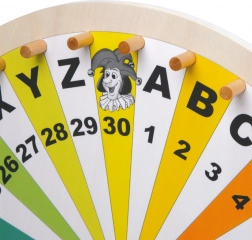 Trælykkehjulet small foot forvandler enhver aktivitet til et spændende spil. Takket være segmenter med bogstaverne A–Z, tallene 1–30 og fire jokere er det perfekt til ordlege, lotterier, læringsaktiviteter og familiesjov. Den farverige udformning hjælper med orientering og fastholder børns opmærksomhed.