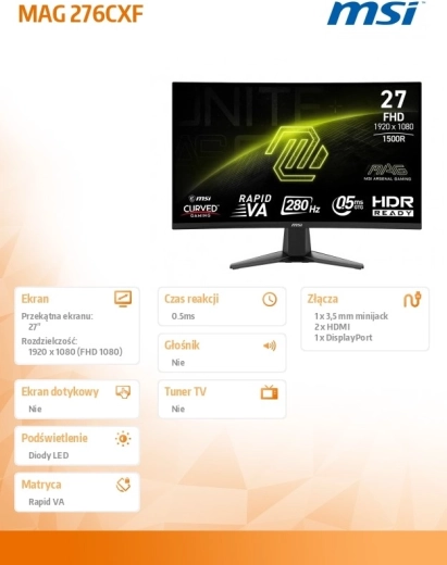 MSI MAG 276CXF er skabt til gamere, der kræver maksimal flydende gengivelse og præcision. Den buede skærm trækker dig ind i spillet, mens den høje opdateringshastighed på 280 Hz og lav responstid sikrer krystalklart billede selv ved hurtige bevægelser. De stilrene, smalle rammer og det stabile V‑stativ passer ind i ethvert gaming-setup.