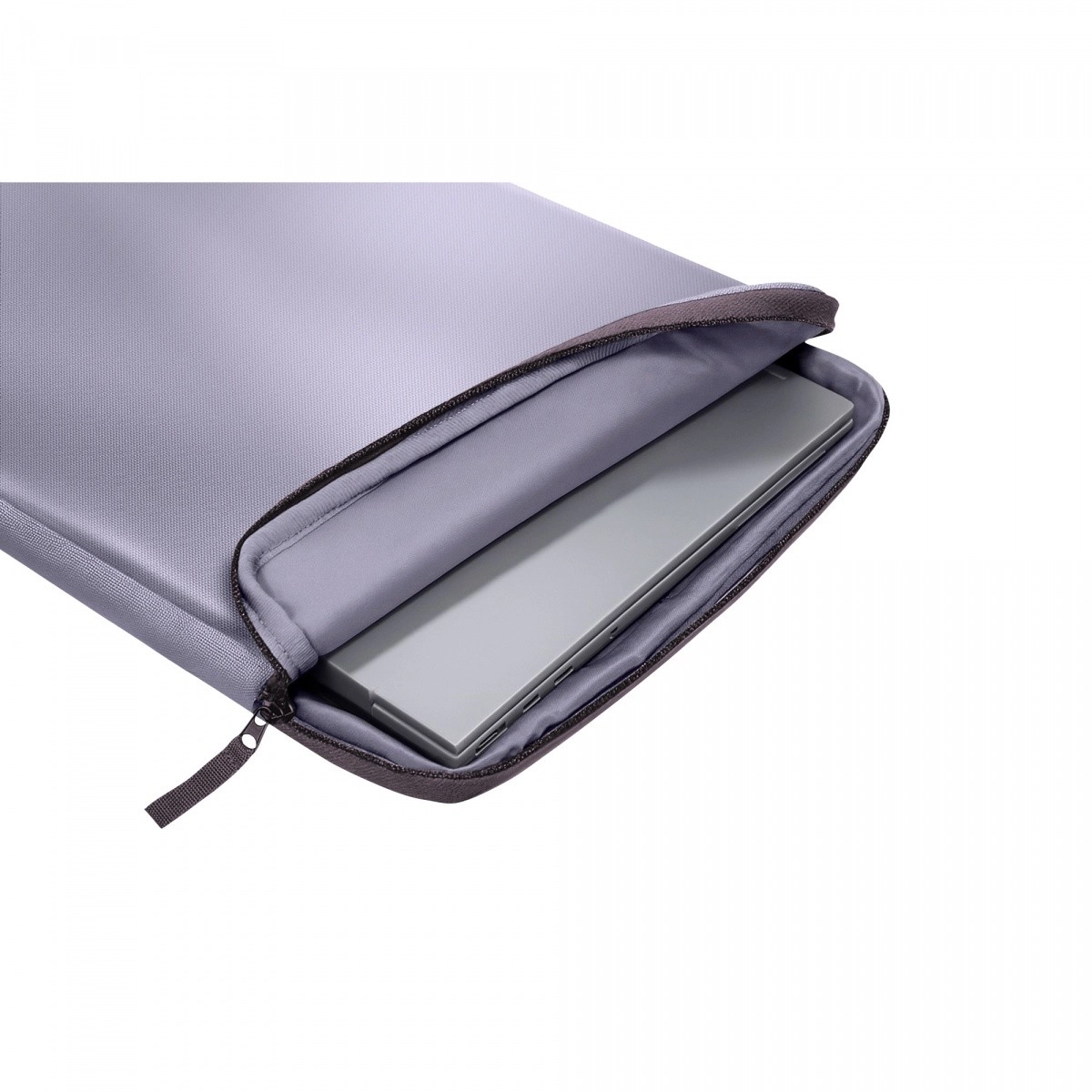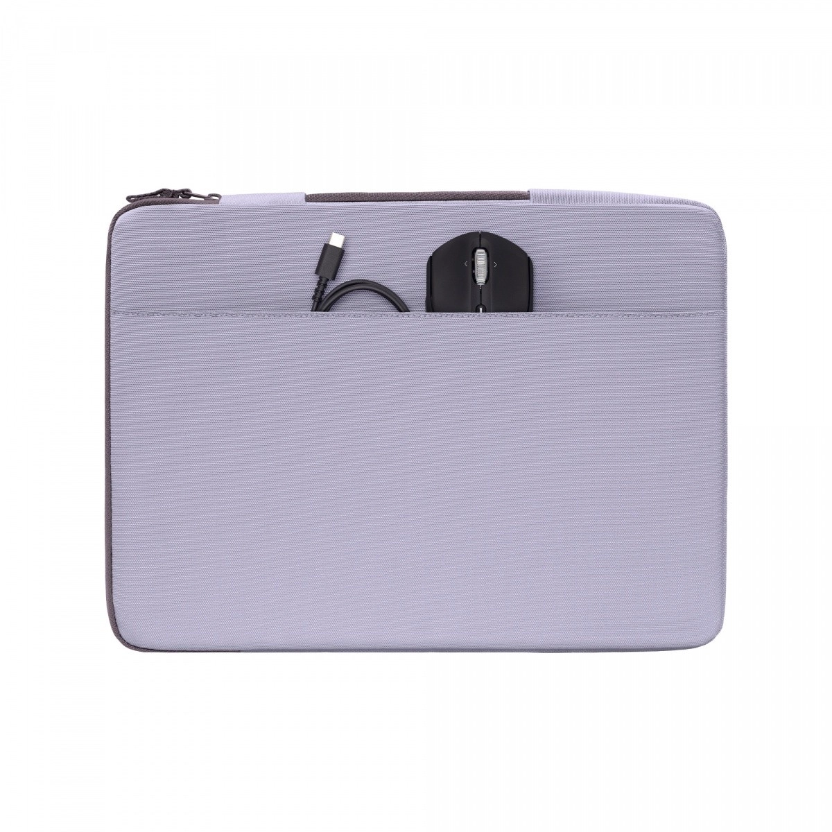 Coveret rummer problemfrit de fleste 14" laptops, inklusive kompakte 13"-modeller. Den forreste, hurtigt tilgængelige lomme holder kabler, mus, telefon eller USB‑C-tilbehør pænt organiseret. Takket være den slanke profil og skjult håndtag kan du nemt bære det alene eller glide det ned i en rygsæk eller taske.