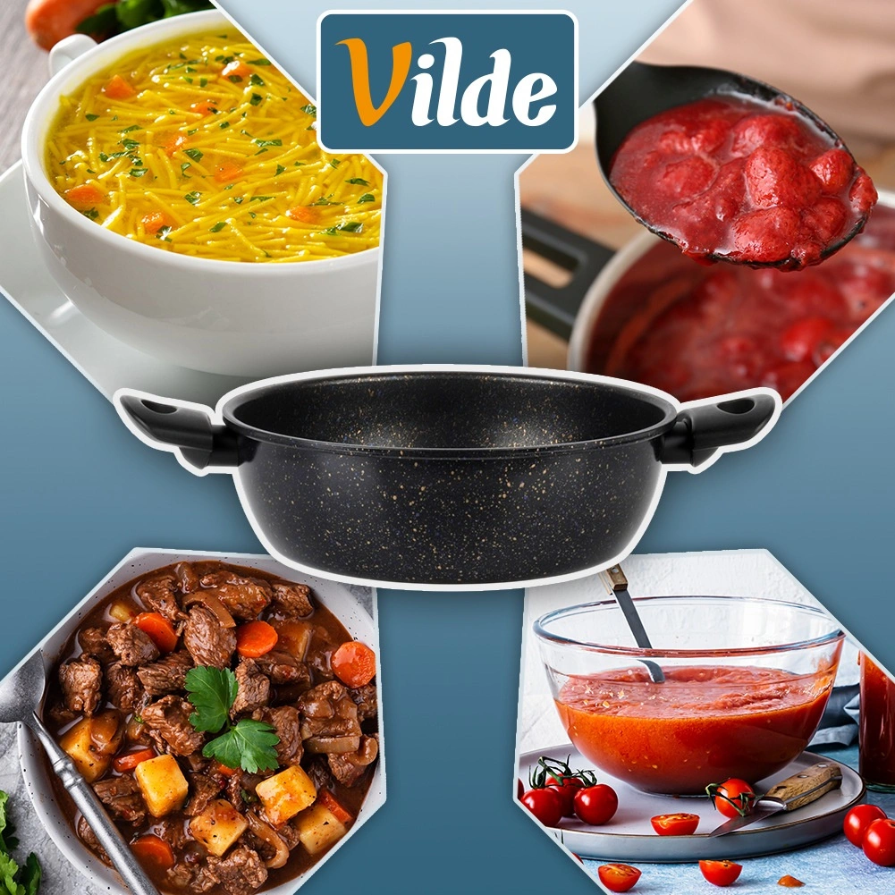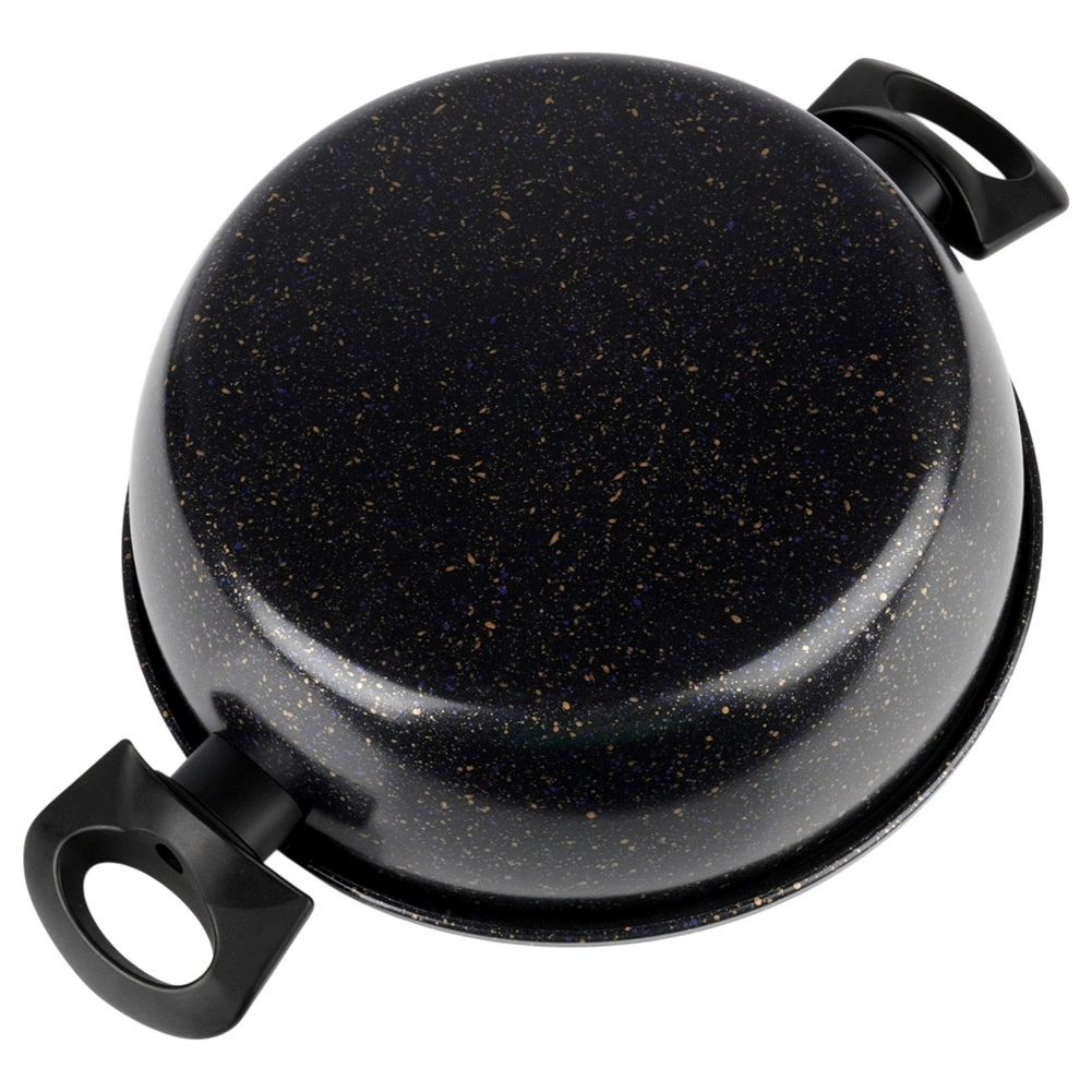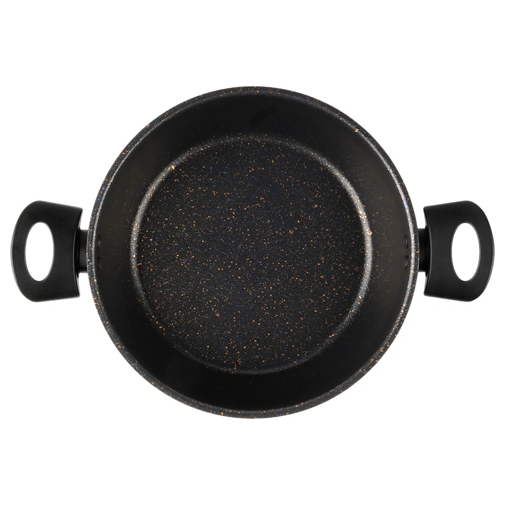 Den populære gryde fra BASIC LINE-serien er lavet af holdbart kulstofstål med en non-stick granitbelægning. Den brede krop og stabile bund sikrer jævn varmefordeling, hvilket gør den perfekt til supper, saucer, grøntsager og daglige familiemåltider. To ergonomiske sidehåndtag gør det nemt og sikkert at bære.