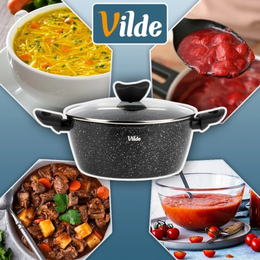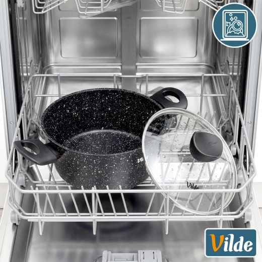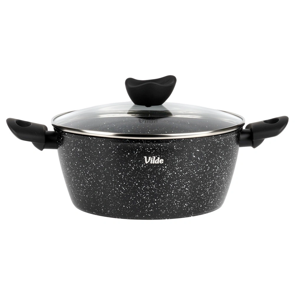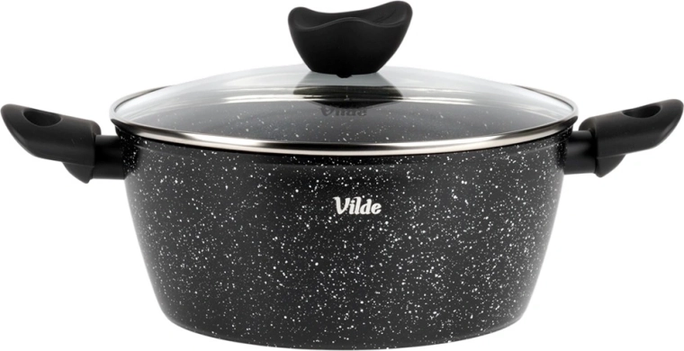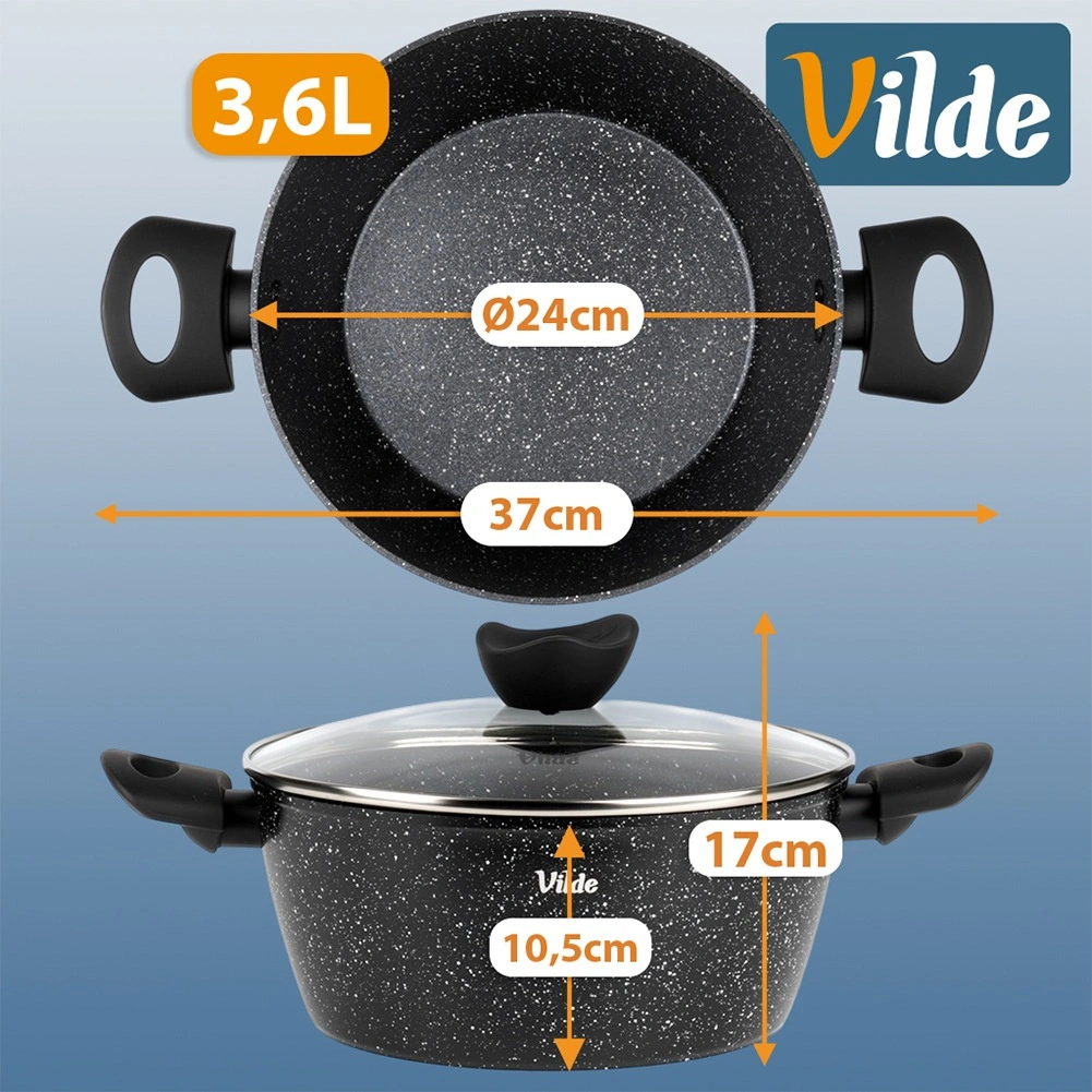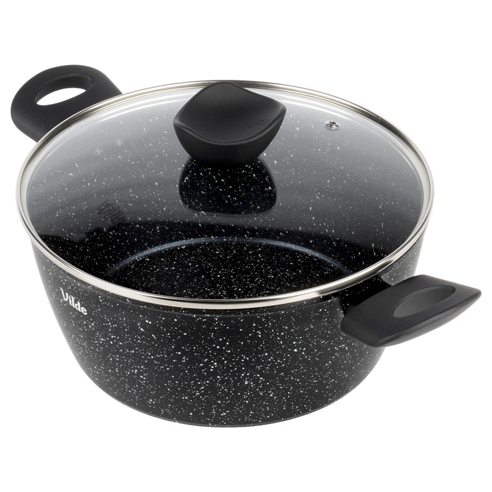 Praktisk gryde med volumen 3,6 l fra serien VILDE GRANITICA kombinerer en slagfast aluminiumsstøbt krop med en nonstick granitbelægning for sund madlavning med et minimum af fedt. Inkluderer et glaslåg med dampudgang og behagelige Soft Touch-håndtag. Velegnet til induktion, gas, el og keramik og kan vaskes i opvaskemaskine.