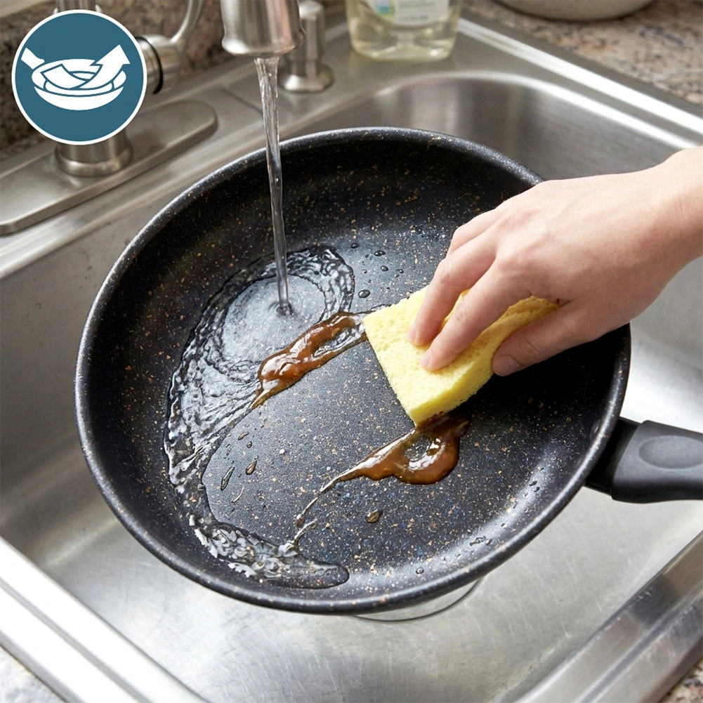 Den specielle overflade med graniteffekt forhindrer fastbrænding og gør det muligt at lave mad med et minimum af olie. Maden slipper let, og panden rengøres hurtigt.