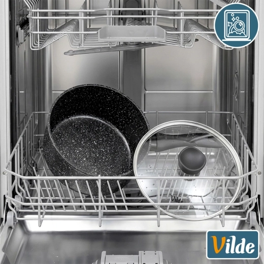 Flerlags granitbelægning minimerer fastbrænding og gør det muligt at lave mad med mindre fedt. Rengøringen er hurtig og ubesværet.