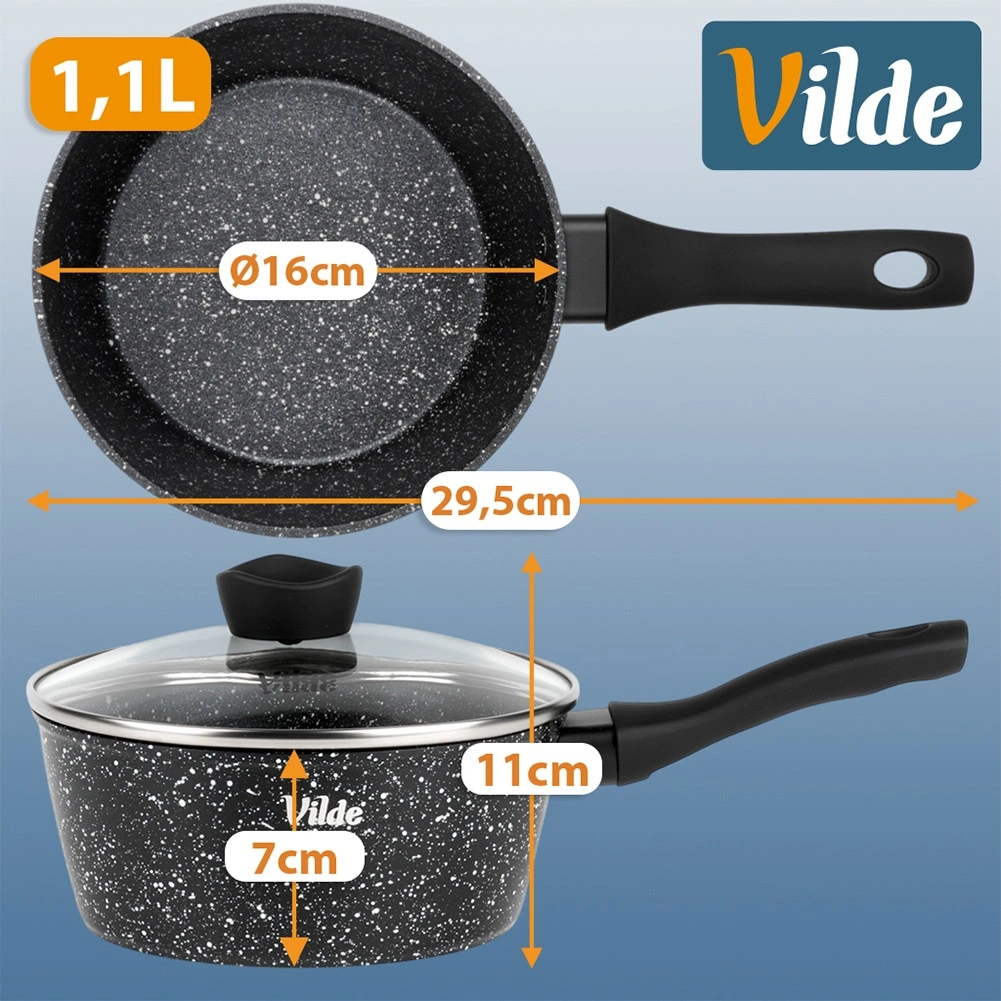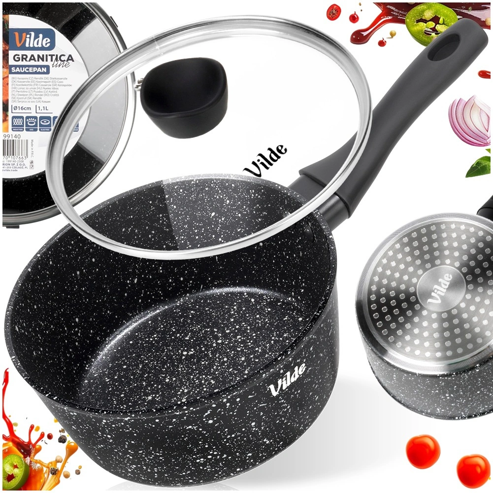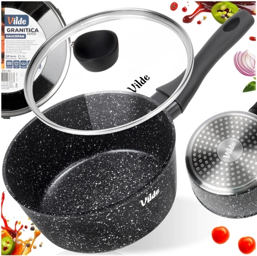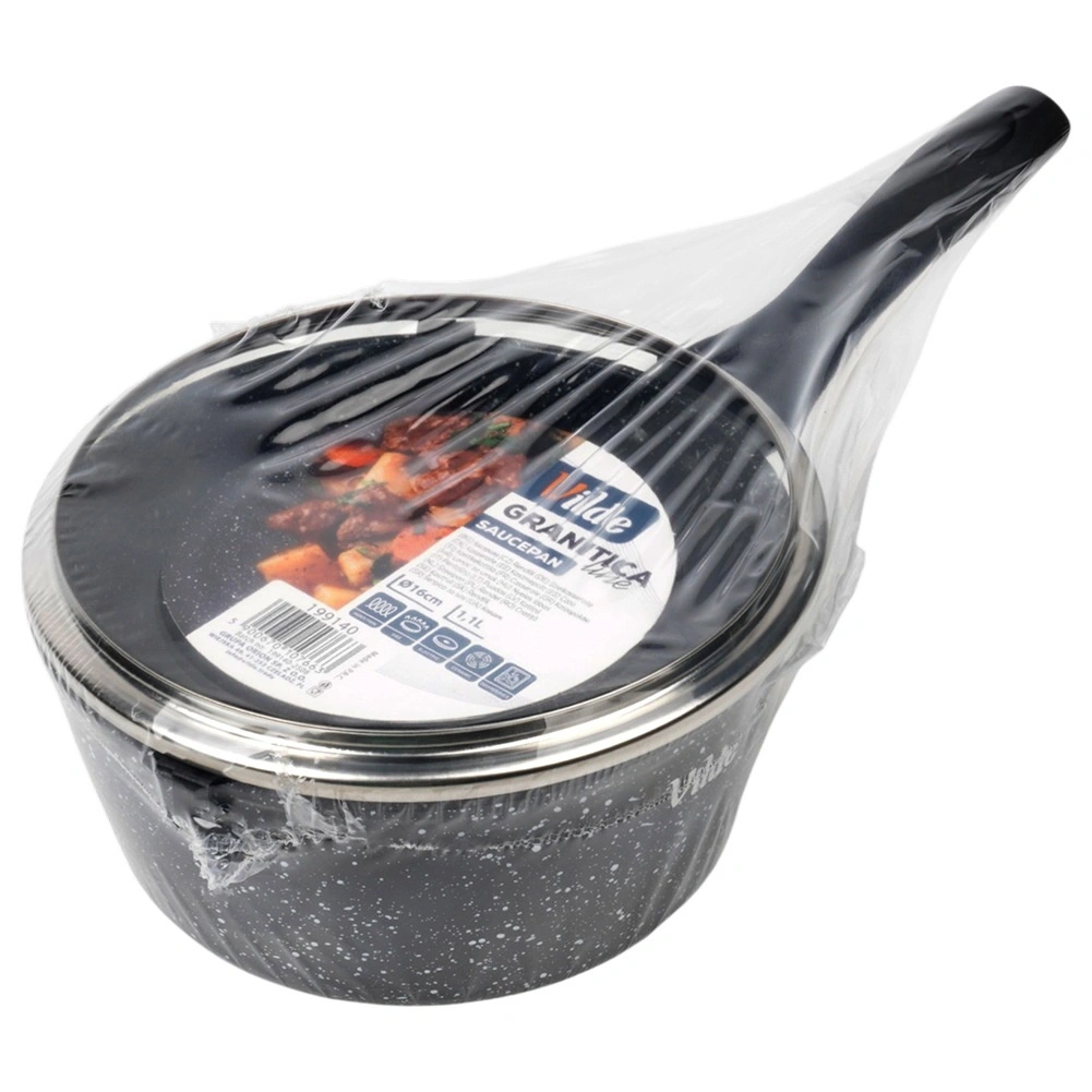 Den kompakte kasserolle Vilde fra serien GRANITICA med en diameter på 16 cm og et volumen på 1,1 l er ideel til madlavning i hverdagen. Takket være den non-stick granitbelægning kan du tilberede retter med et minimum af fedt, glaslåget med damphul gør det nemt at holde øje med madlavningen, og det ergonomiske soft-touch-håndtag sikrer et sikkert greb. Velegnet til alle typer komfurer, inklusive induktion, og til opvaskemaskine.