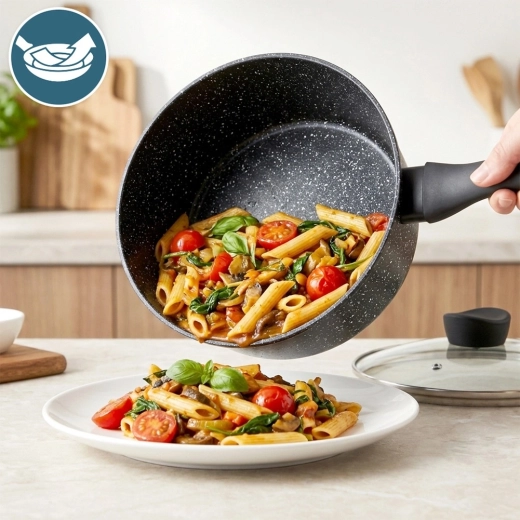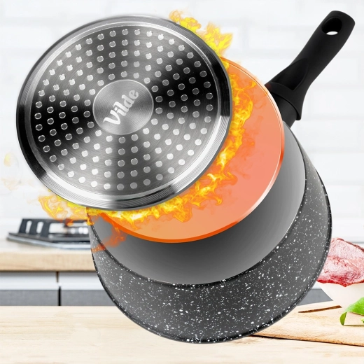 - Holdbar granit-non-stick – madlavning med minimalt olieforbrug, intet brænder fast.