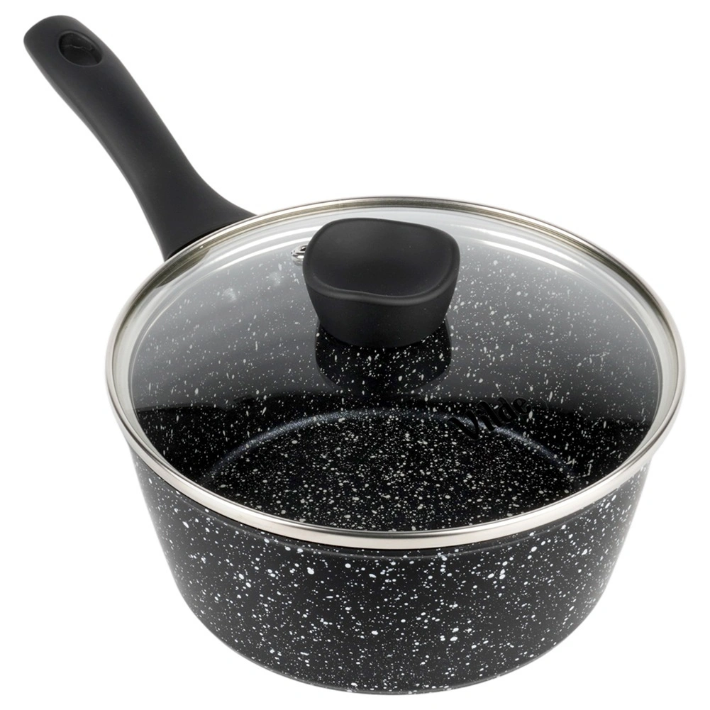 Den alsidige kasserolle på 16 cm er perfekt til saucer, opvarmning af mælk, smeltning af smør, sautering af løg og kogning af æg. Kroppen af trykstøbt aluminium med non-stick granitlag sikrer jævn varmefordeling og nem rengøring. Glaslåget med rustfri stålkant og dampventil gør det muligt hele tiden at have madlavningen under kontrol.