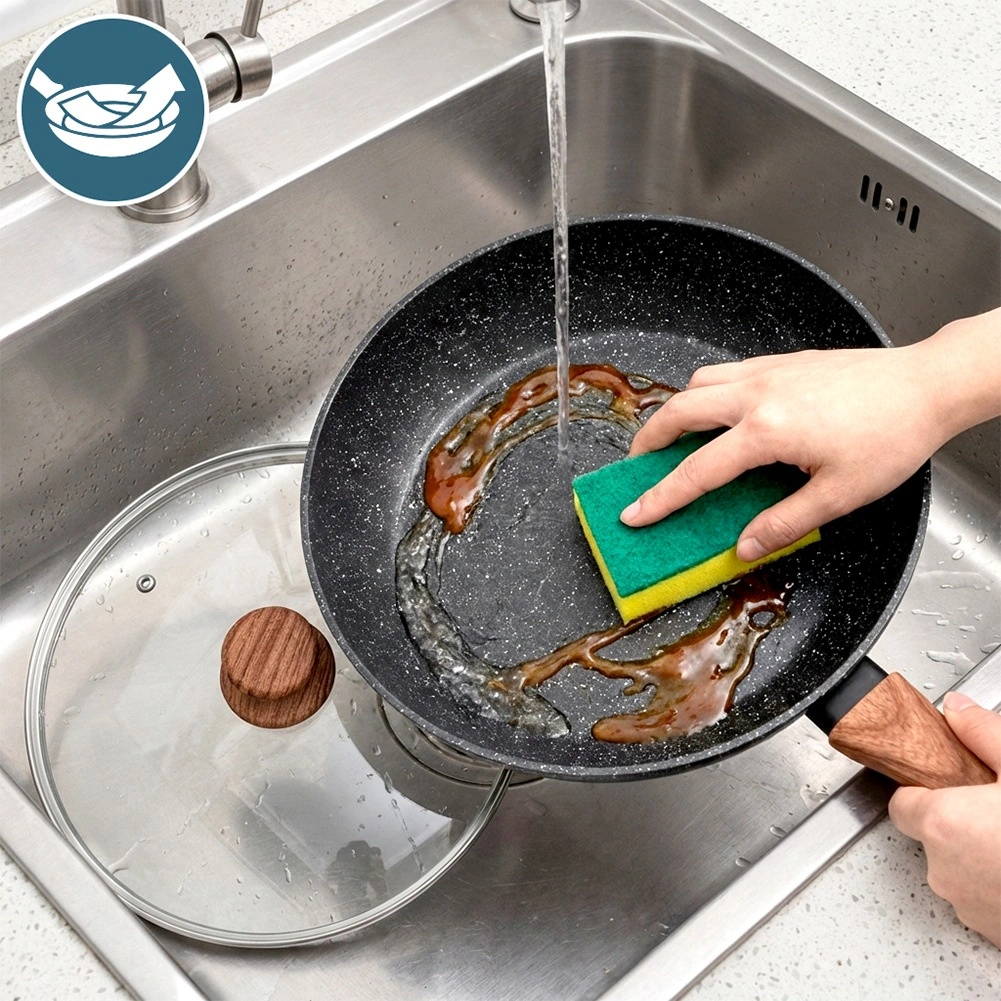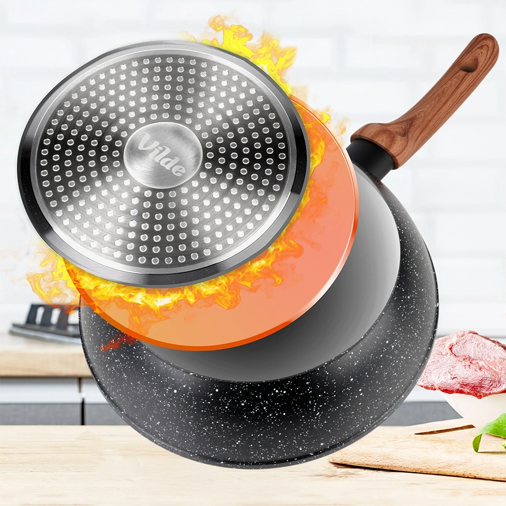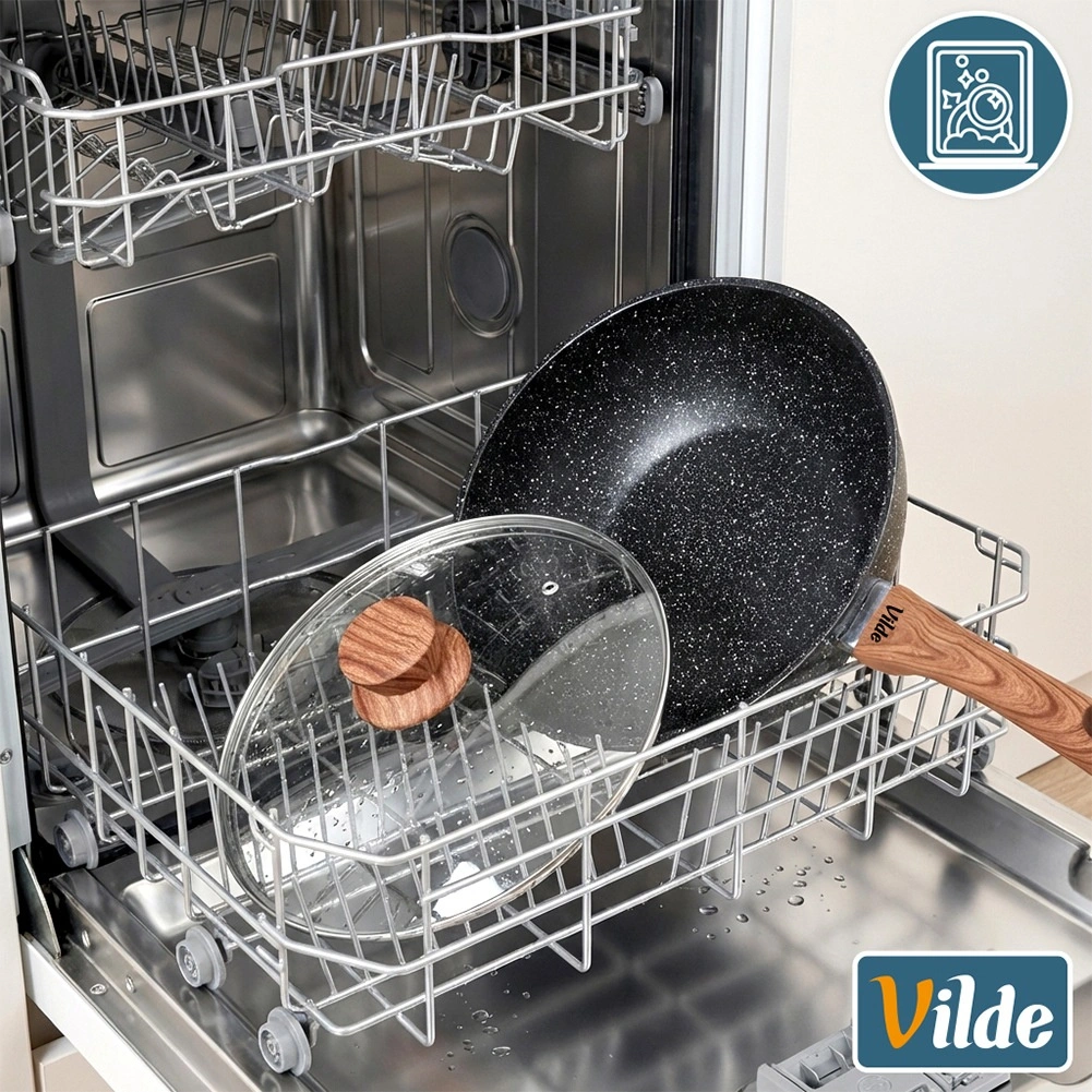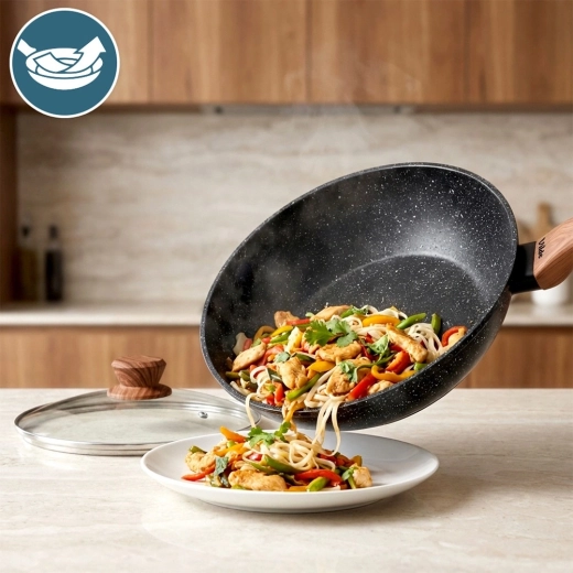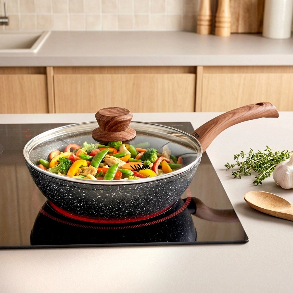 Flerlags granitbelægning forhindrer fastbrænding og gør rengøringen lettere. Ideel til sundere tilberedning uden overskydende olie.