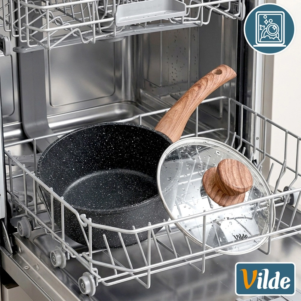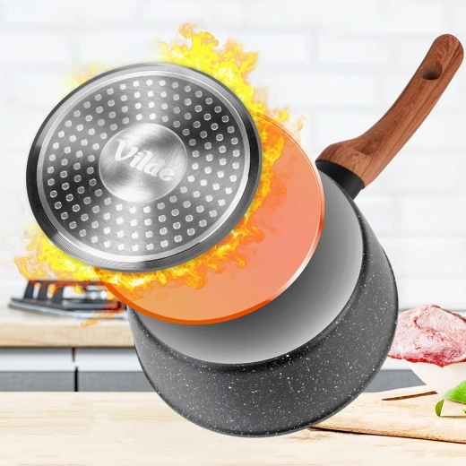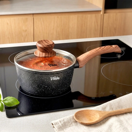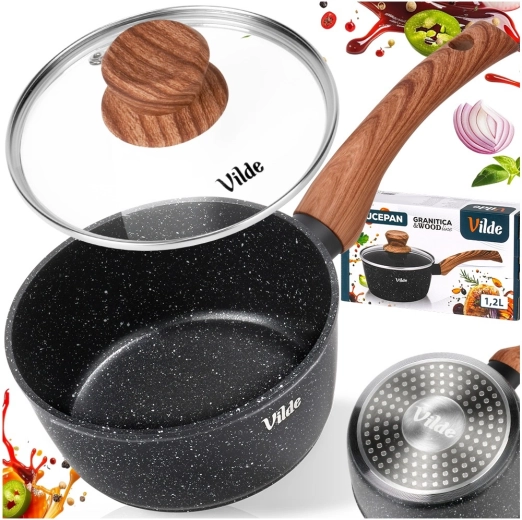 Den elegante kasserolle fra Granitica Wood-kollektionen er ideel til daglig madlavning af mindre portioner – fra saucer og grød til opvarmning af mælk eller smeltning af smør. Den granitbaserede non-stick-belægning sikrer madlavning med minimalt olieforbrug og nem frigivelse af maden.