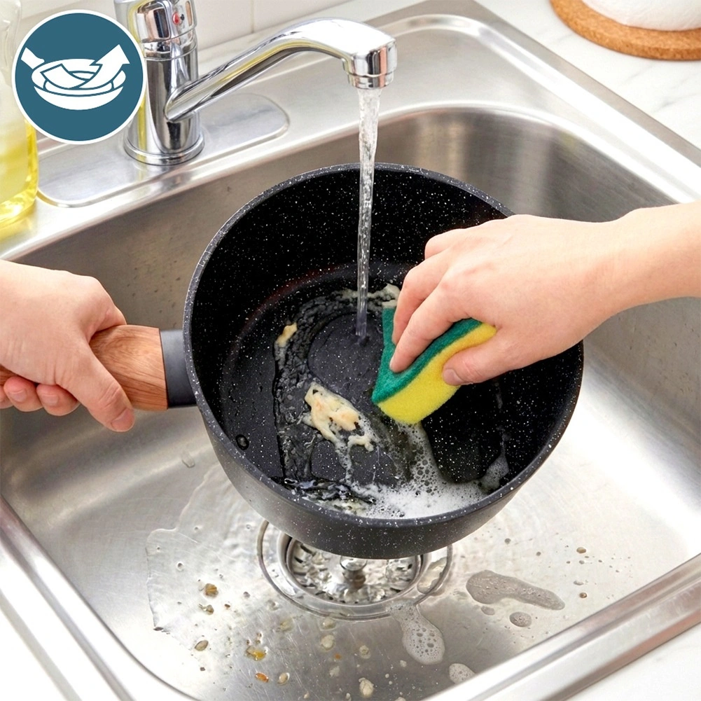 Den specialudviklede granitlag minimerer vedhæftning, gør det muligt at lave mad med mindre fedt og gør rengøringen lettere.
