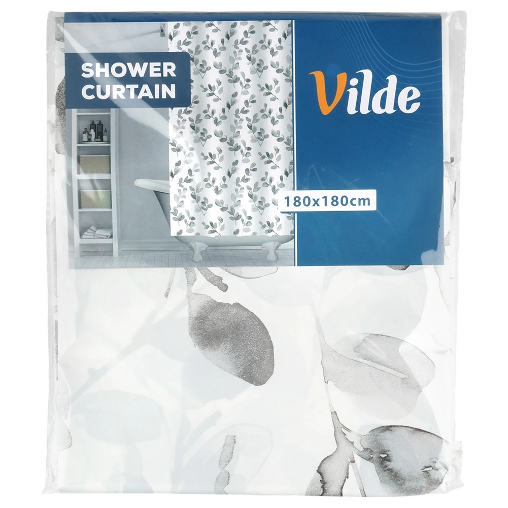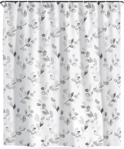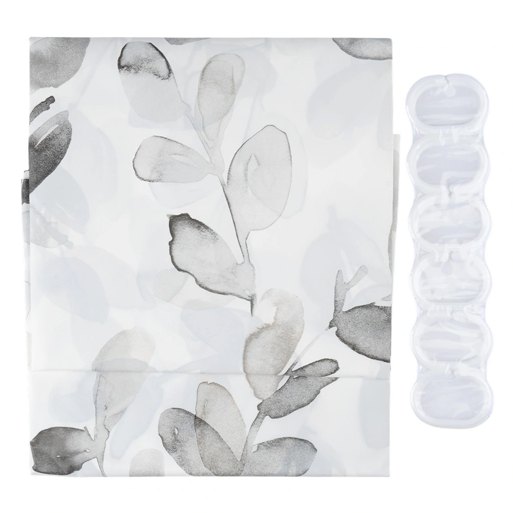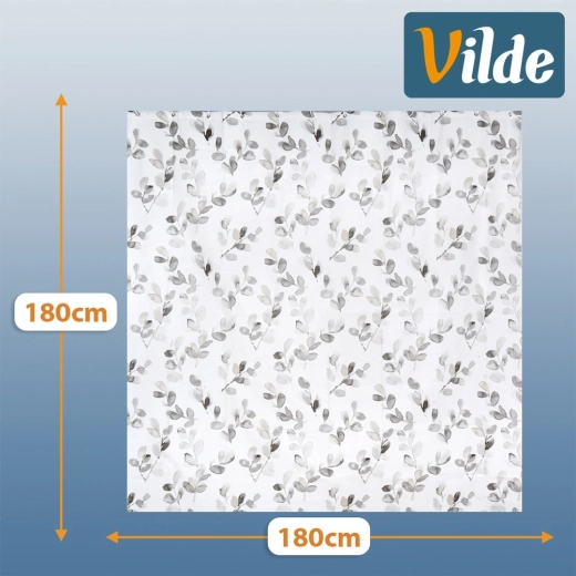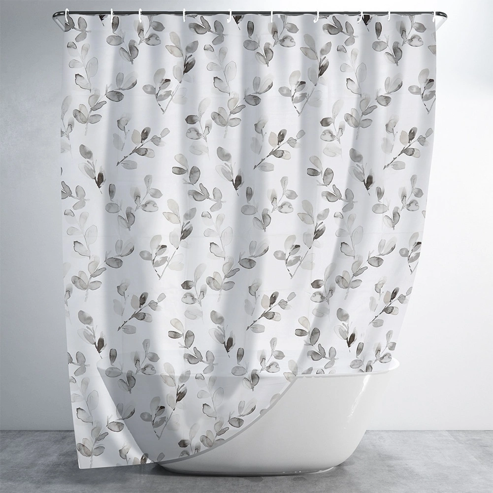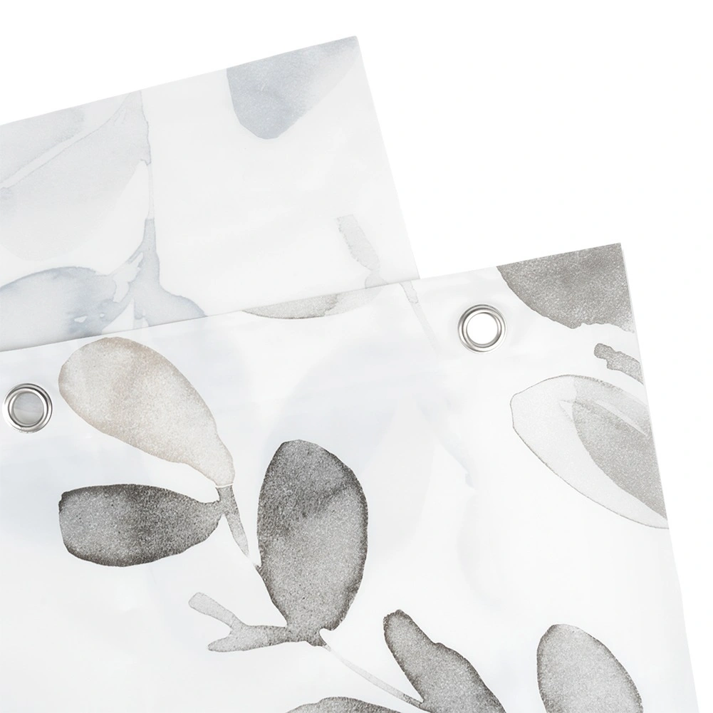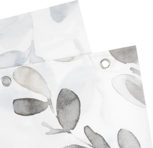 Skab en rolig, naturlig stemning på badeværelset. Det hvide forhæng med gråtonede blade forener moderne design og praktisk vandbeskyttelse. Takket være PEVA-materialet er det vandafvisende, nemt at rengøre og skånsomt mod miljøet.