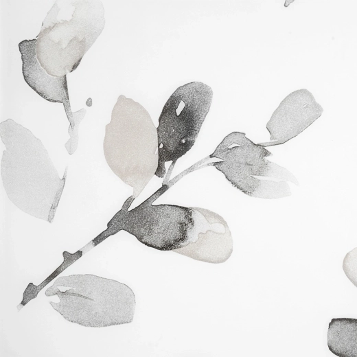 - Botanisk/plantemotiv i grå nuancer på hvid