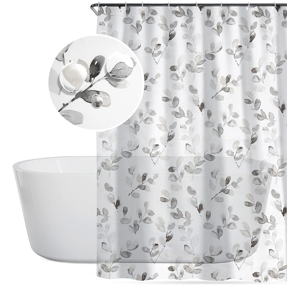 Elegant bruseforhæng i størrelsen 180 × 180 cm med diskret botanisk motiv og 12 kroge i pakken sikrer privatliv og beskyttelse mod vandsprøjt. Fremstillet af miljøvenlig PEVA, er det fri for skadelige stoffer, let, nemt at vedligeholde og passer til de fleste badekar og brusehjørner.