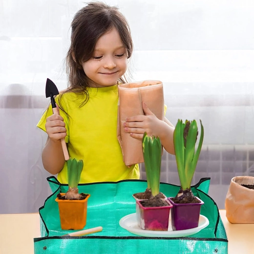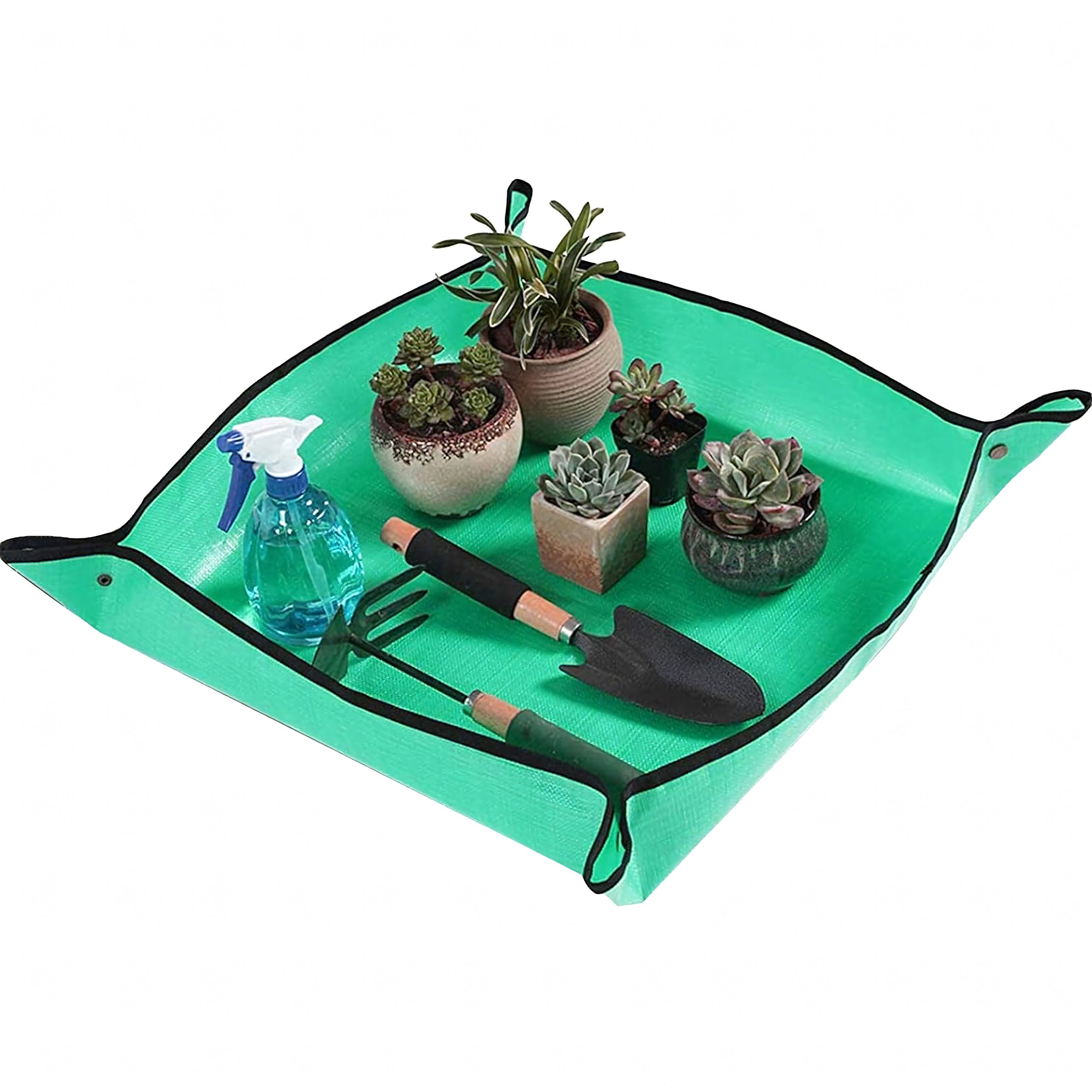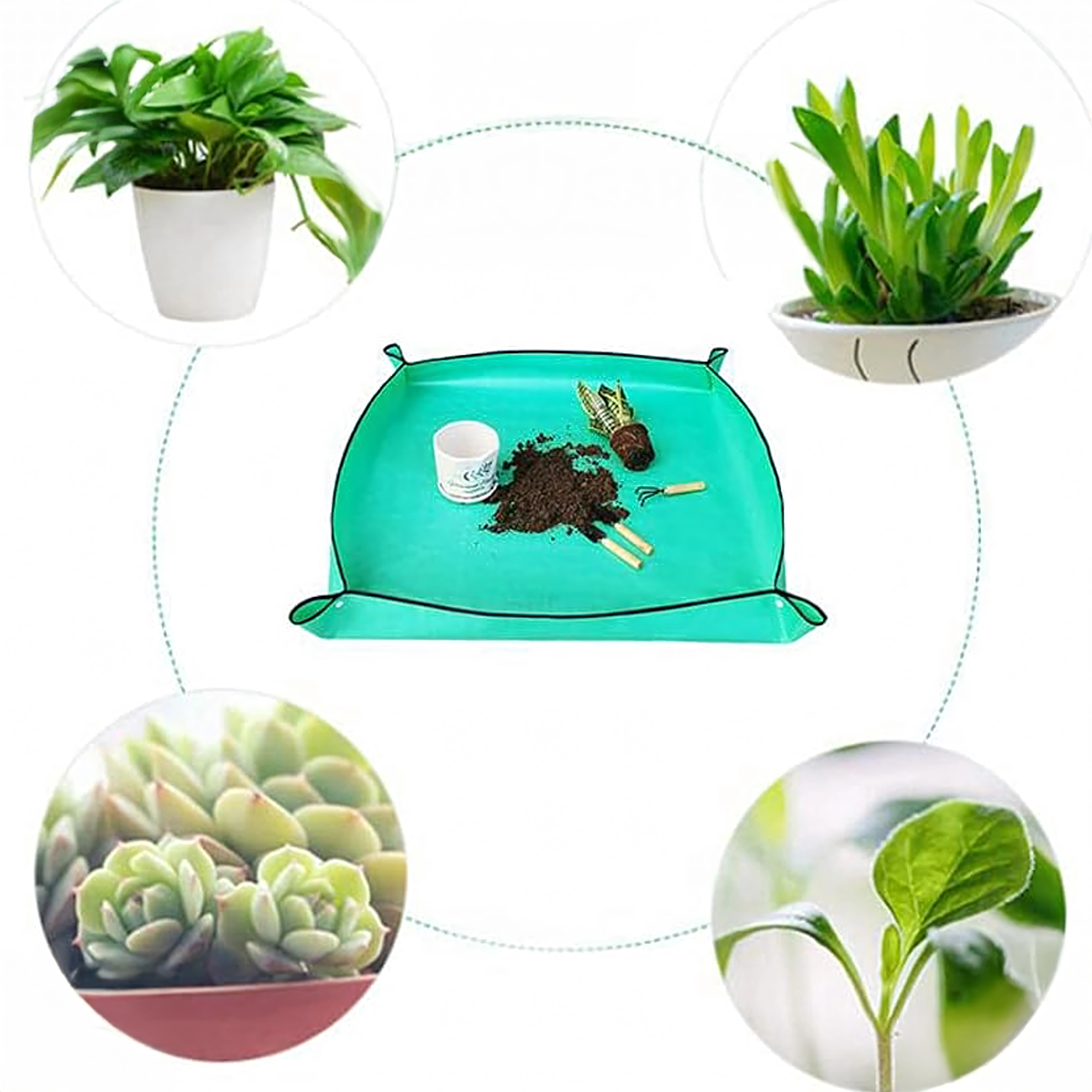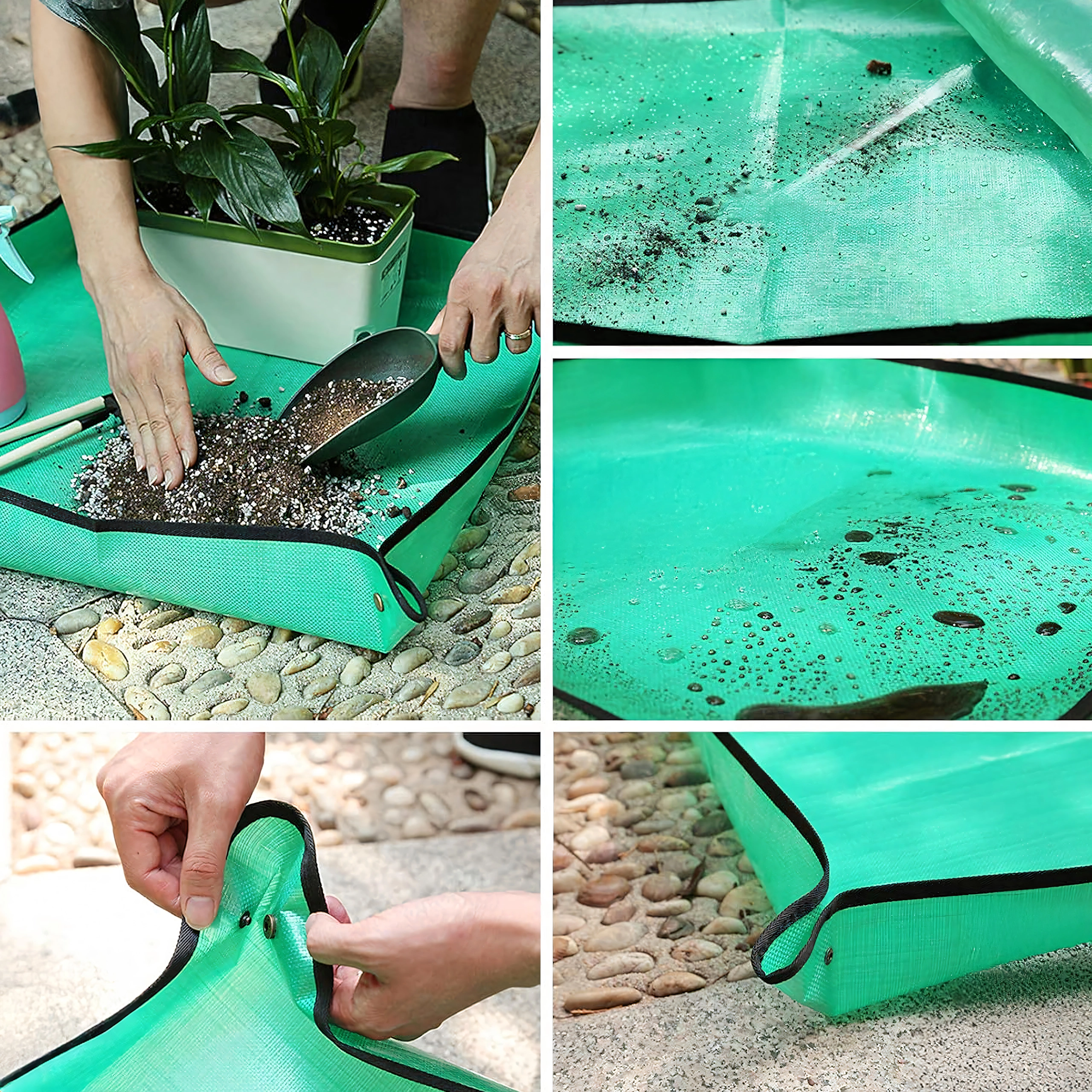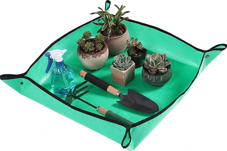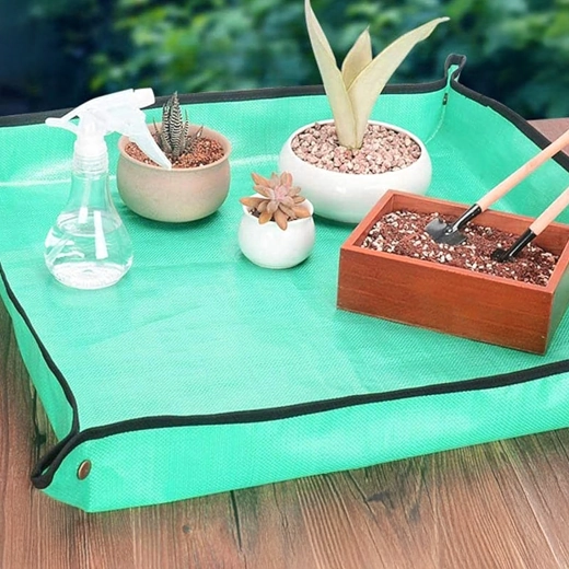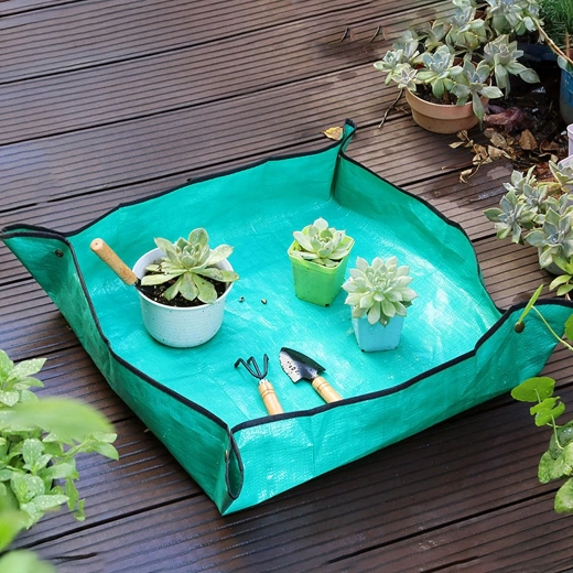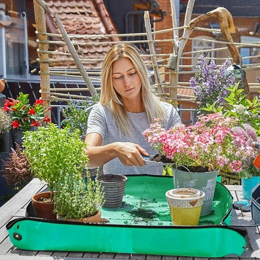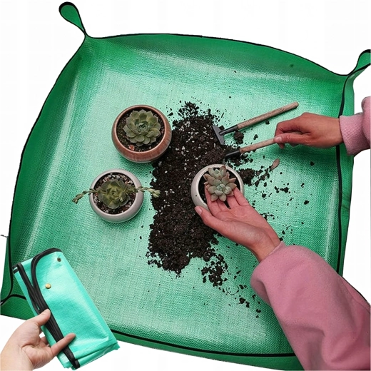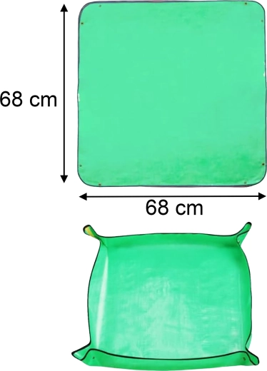 Hold hjem og altan rene under plantearbejde med en praktisk ompotningsmåtte på 68 × 68 cm. De trykknap-lukkede hjørner danner forhøjede kanter, som opfanger jord og vand, og den vandtætte, let aftørrelige overflade gør rengøringen nem. Måtten er sammenklappelig og let, ideel til ompotning, blanding af substrat og arbejde med sukkulenter både inde og ude.